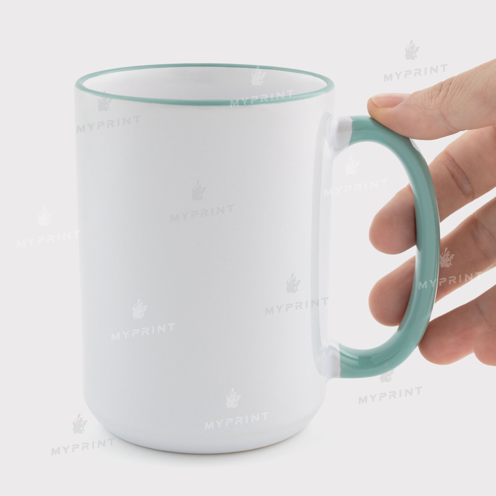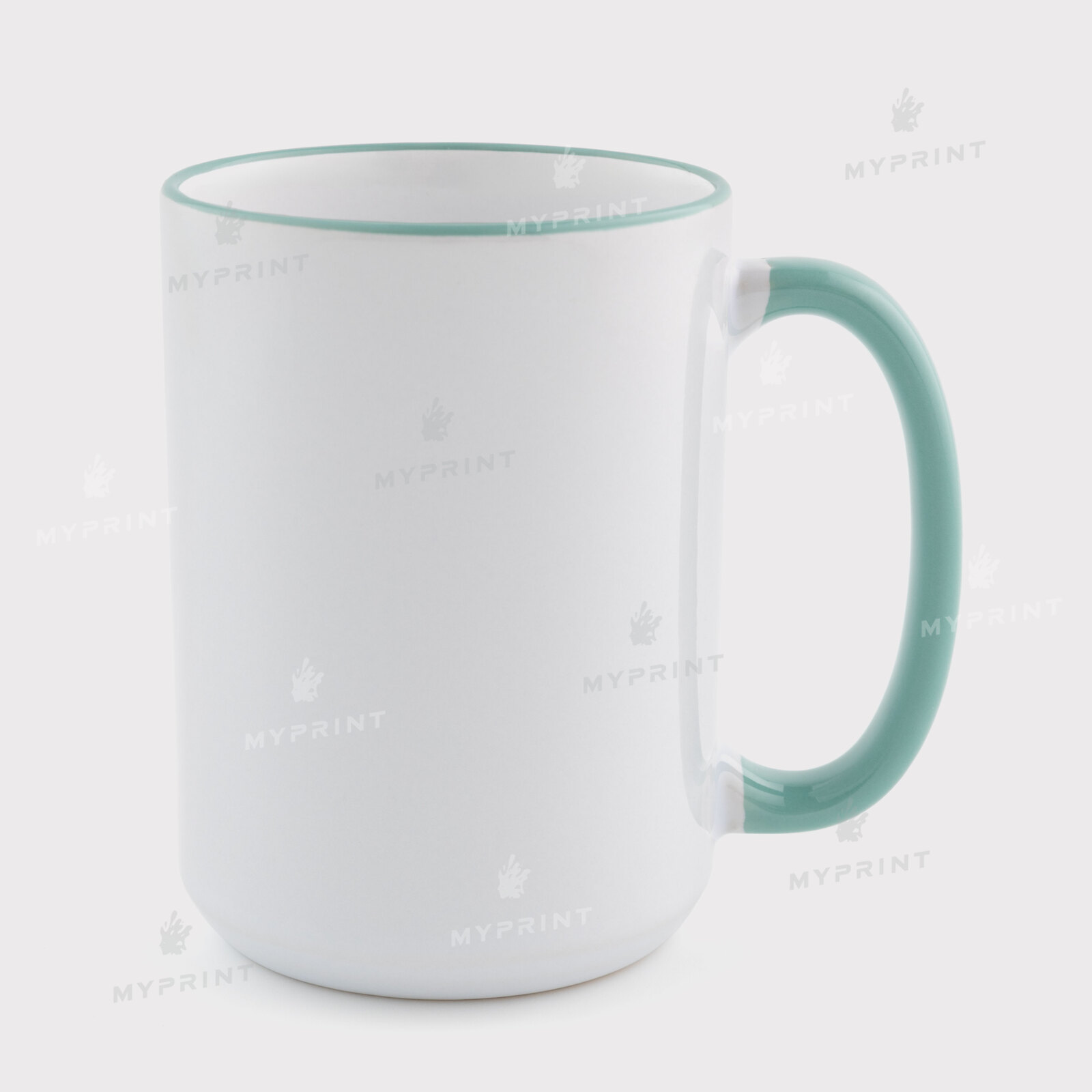 - Кружка для сублимации с цветным ободком и цветной ручкой бирюзовая 15 Oz (425 мл)