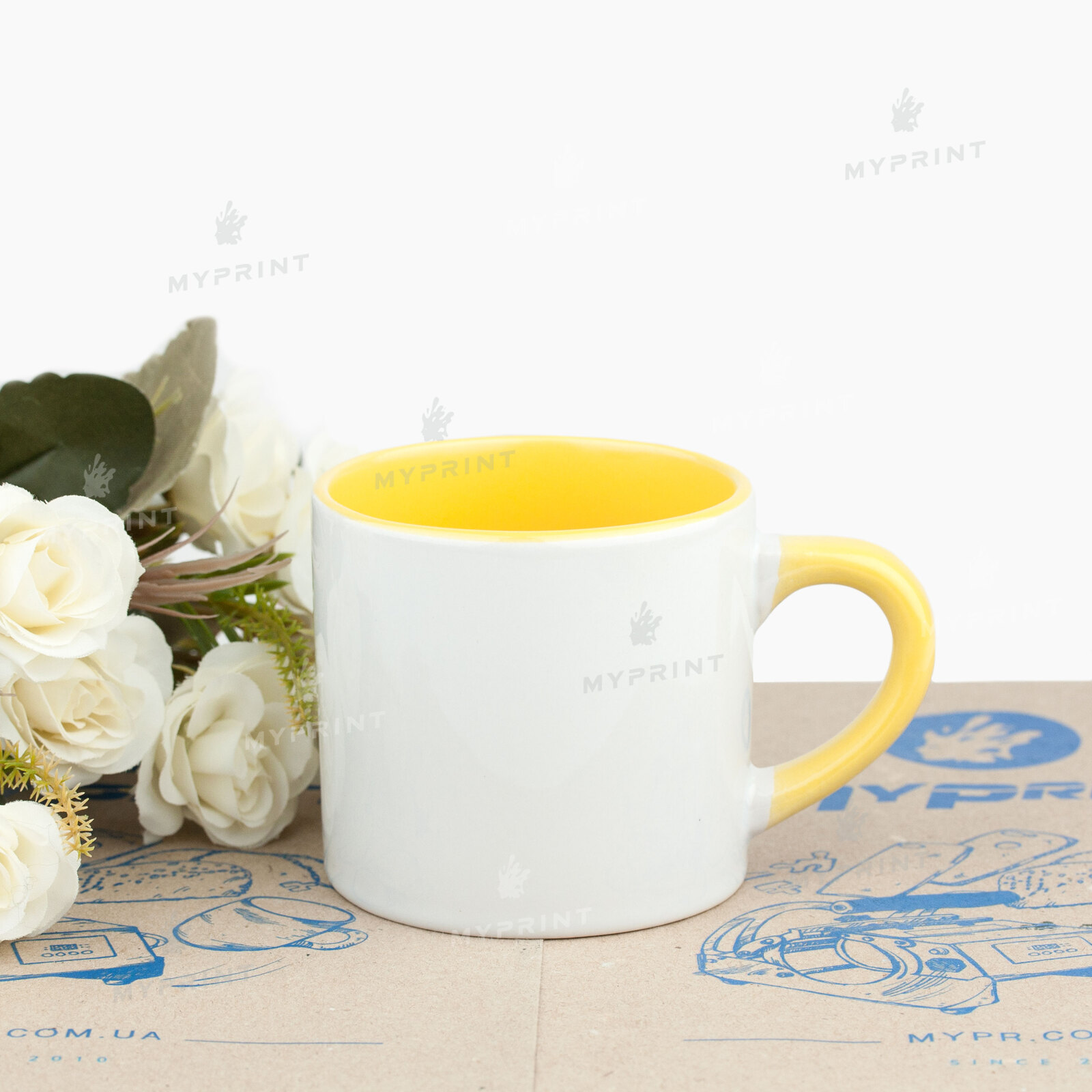 Кружка для сублимации цветная внутри с цветной ручкой желтая 6 Oz (180 мл) (6829)