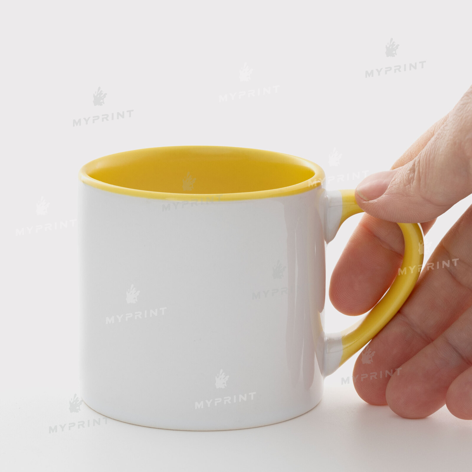 - Кружка для сублимации цветная внутри с цветной ручкой желтая 6 Oz (180 мл)