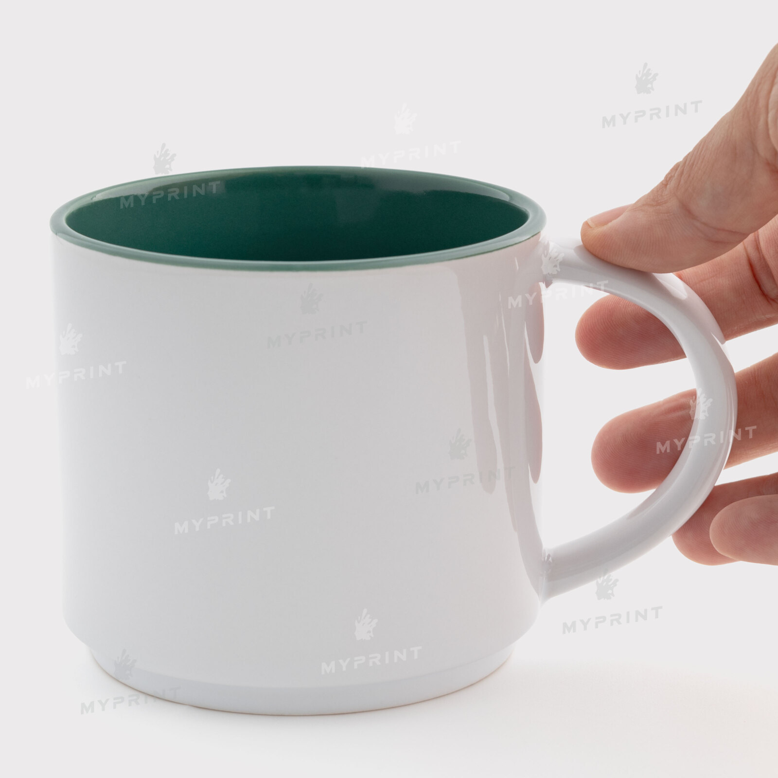 - Кружка для сублимации цветная внутри складывающаяся одна на другую темно-зеленая (450 мл)