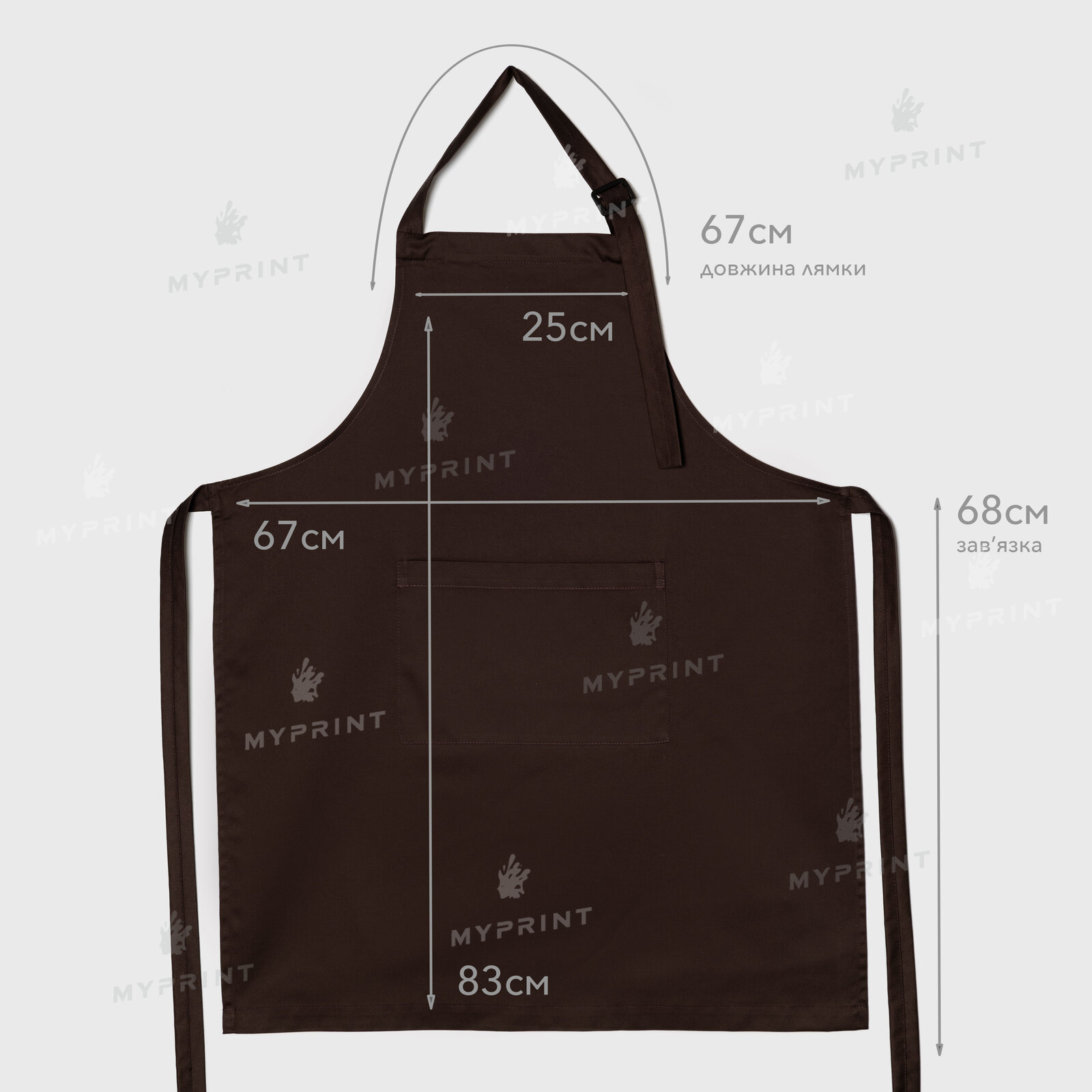- Фартук для сублимации саржевый с регулирующейся лямкой и карманом удлиненный коричневый