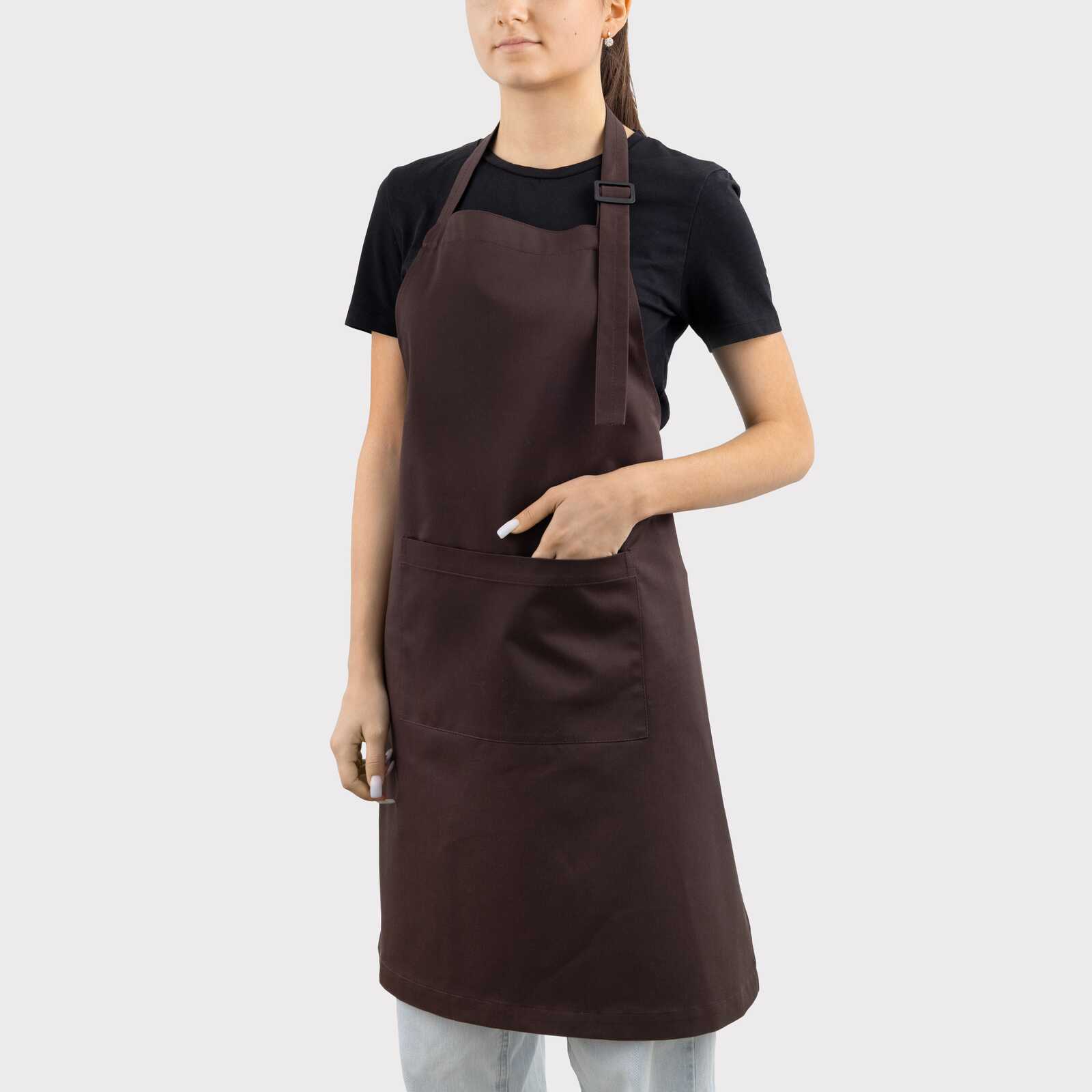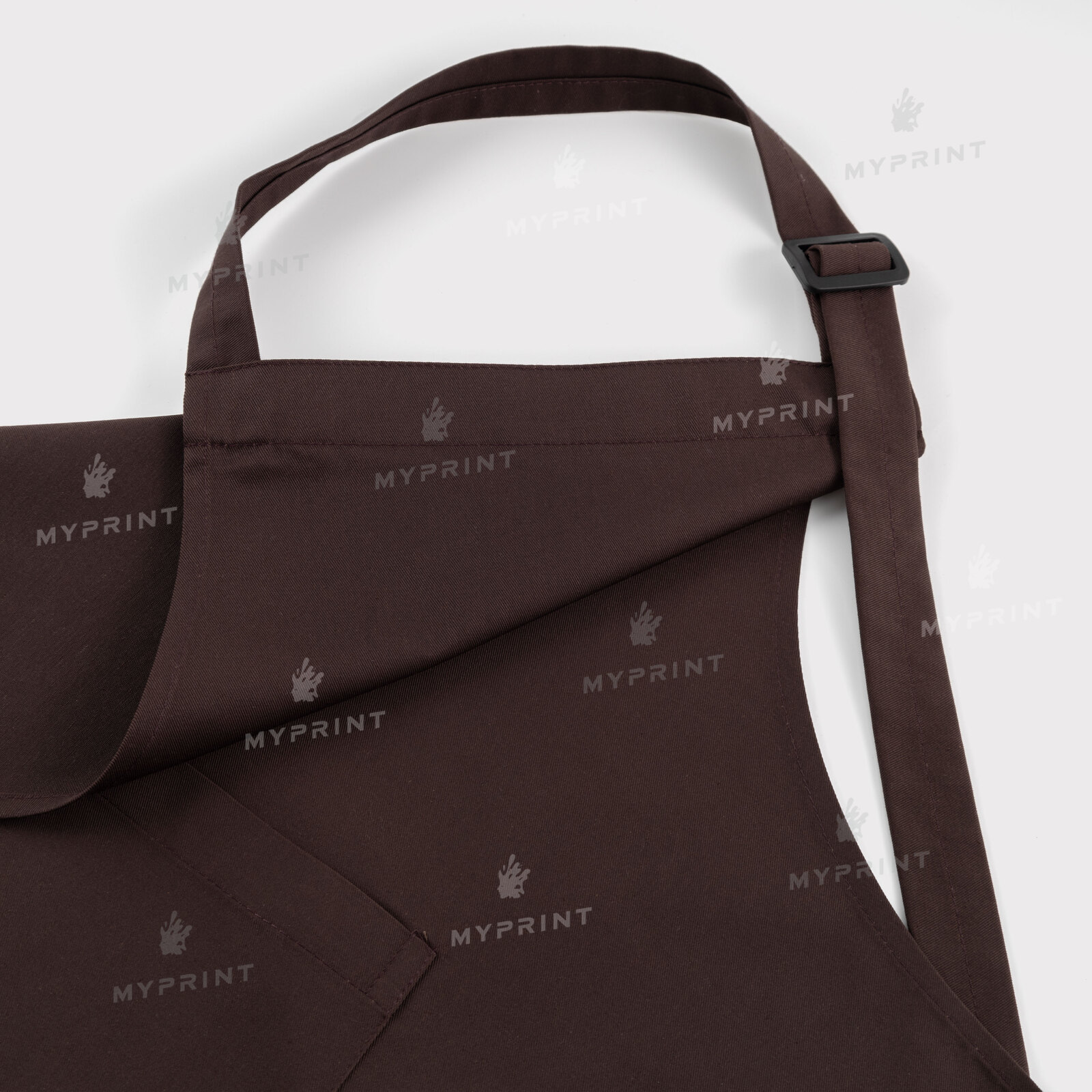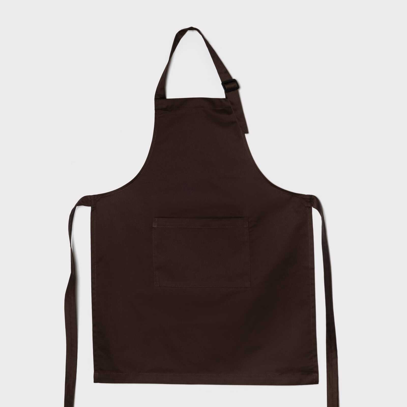 Описание Фартук для сублимации саржевый с регулирующейся лямкой и карманом удлиненный коричневый (12157)