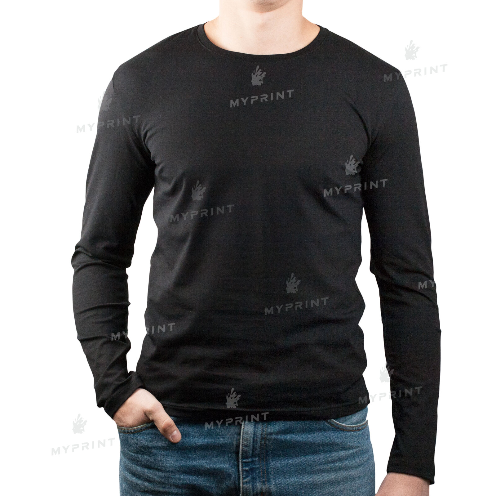 Нанести изображение на Лонгслів чоловічий бавовна / еластан 170 г/м², чорний, XS (8130) можно методом DTF печати и термотрансфера.