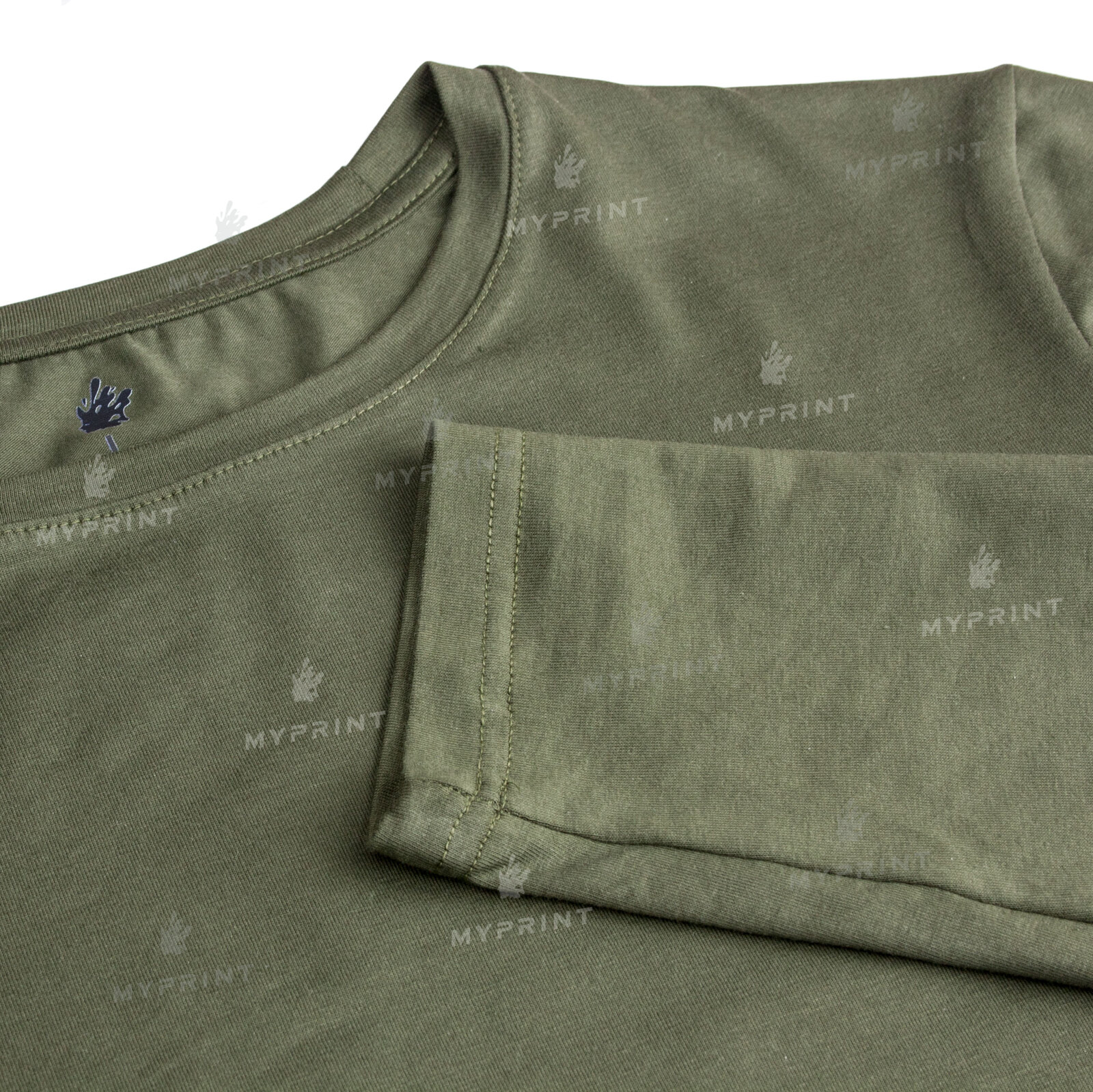 Нанести изображение на Чоловічий лонгслів бавовна / еластан 170 г/м², оливковий, XXL (9102) можно методом DTF печати и термотрансфера.