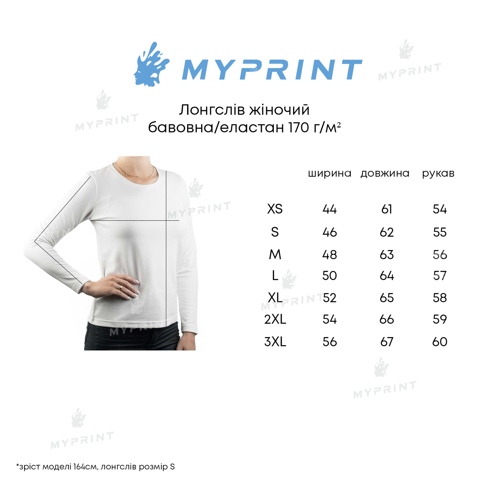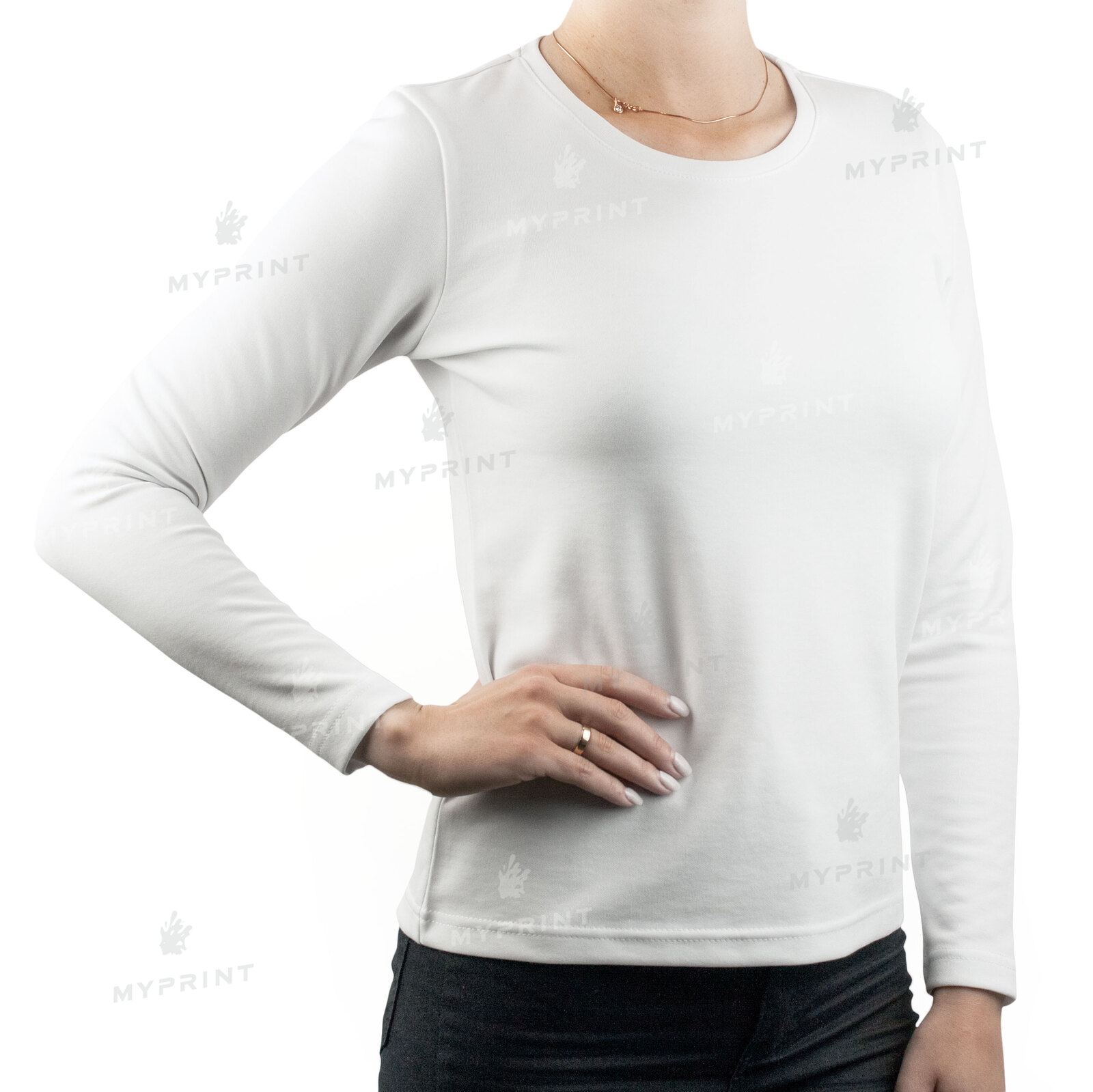 Процесс завершен. Лонгслів жіночий бавовна / еластан 170 г/м², білий, S (8115) теперь не просто заготовка, а готовое изделие с уникальным изображением или фотографией.