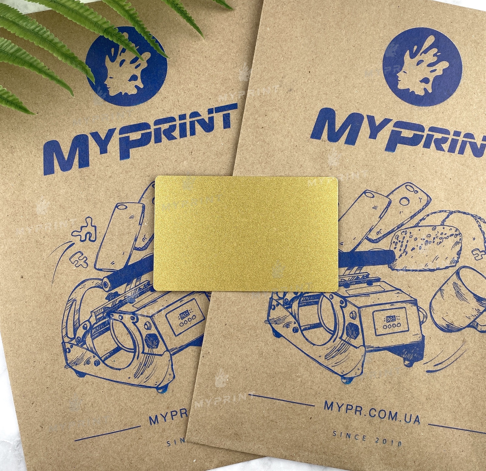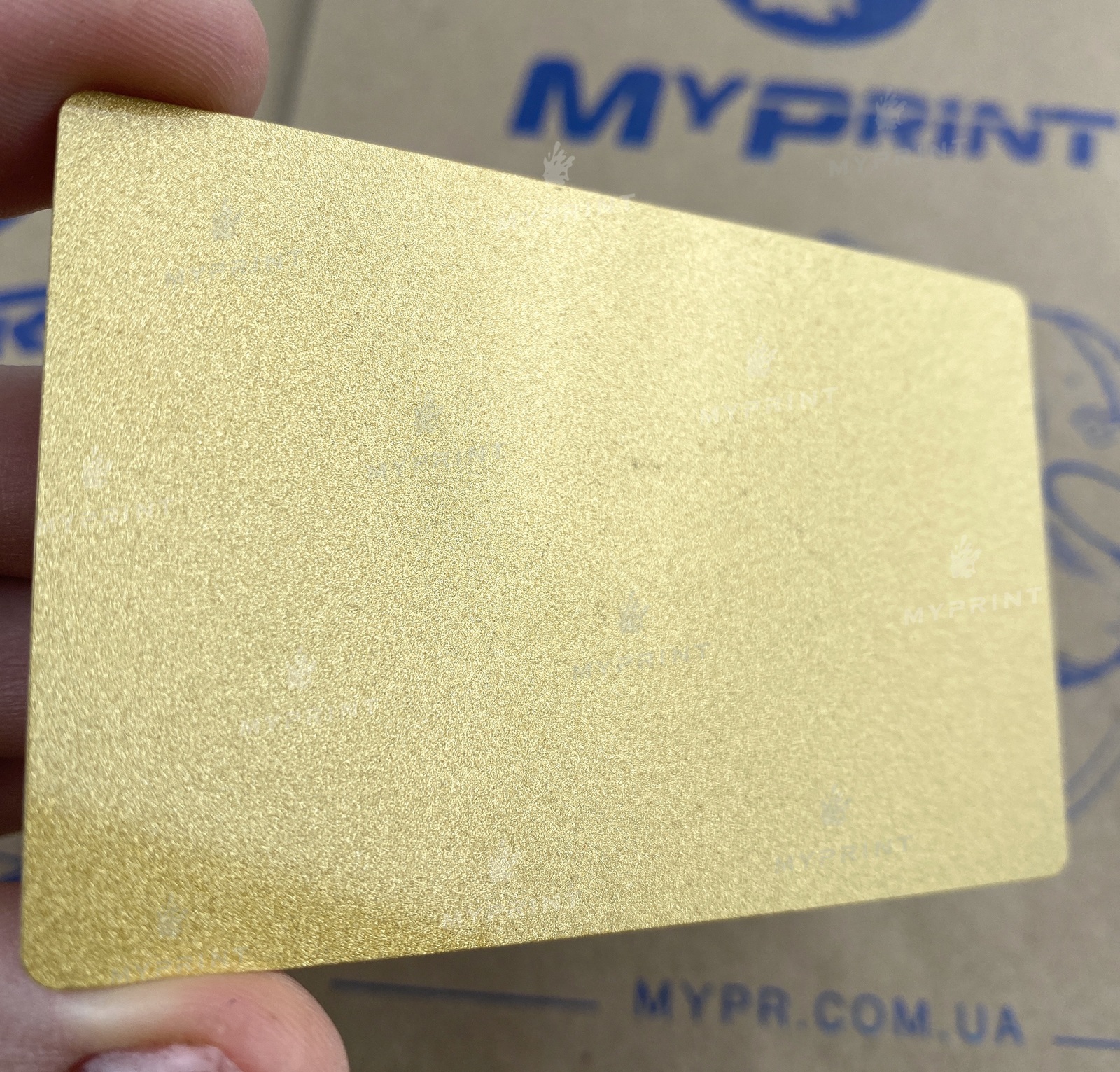 Процесс завершен. Металлическая визитка для сублимации с ровными краями 0,45 мм золото перламутровое теперь не просто заготовка, а готовое изделие с уникальным изображением или фотографией.