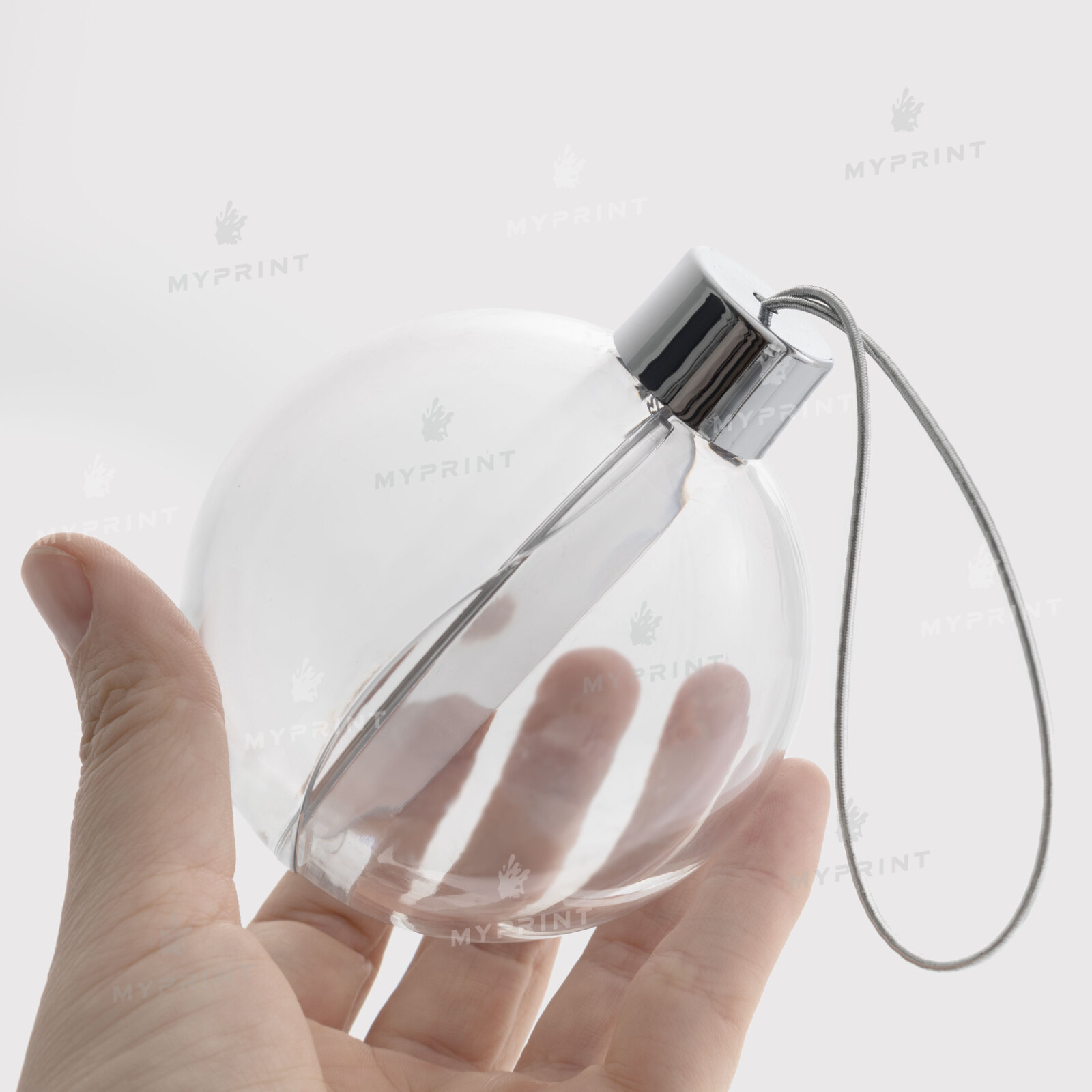 Процесс завершен. Елочная игрушка для сублимации в форме шара акриловая двусторонняя 8 см теперь не просто заготовка, а готовое изделие с уникальным изображением или фотографией.