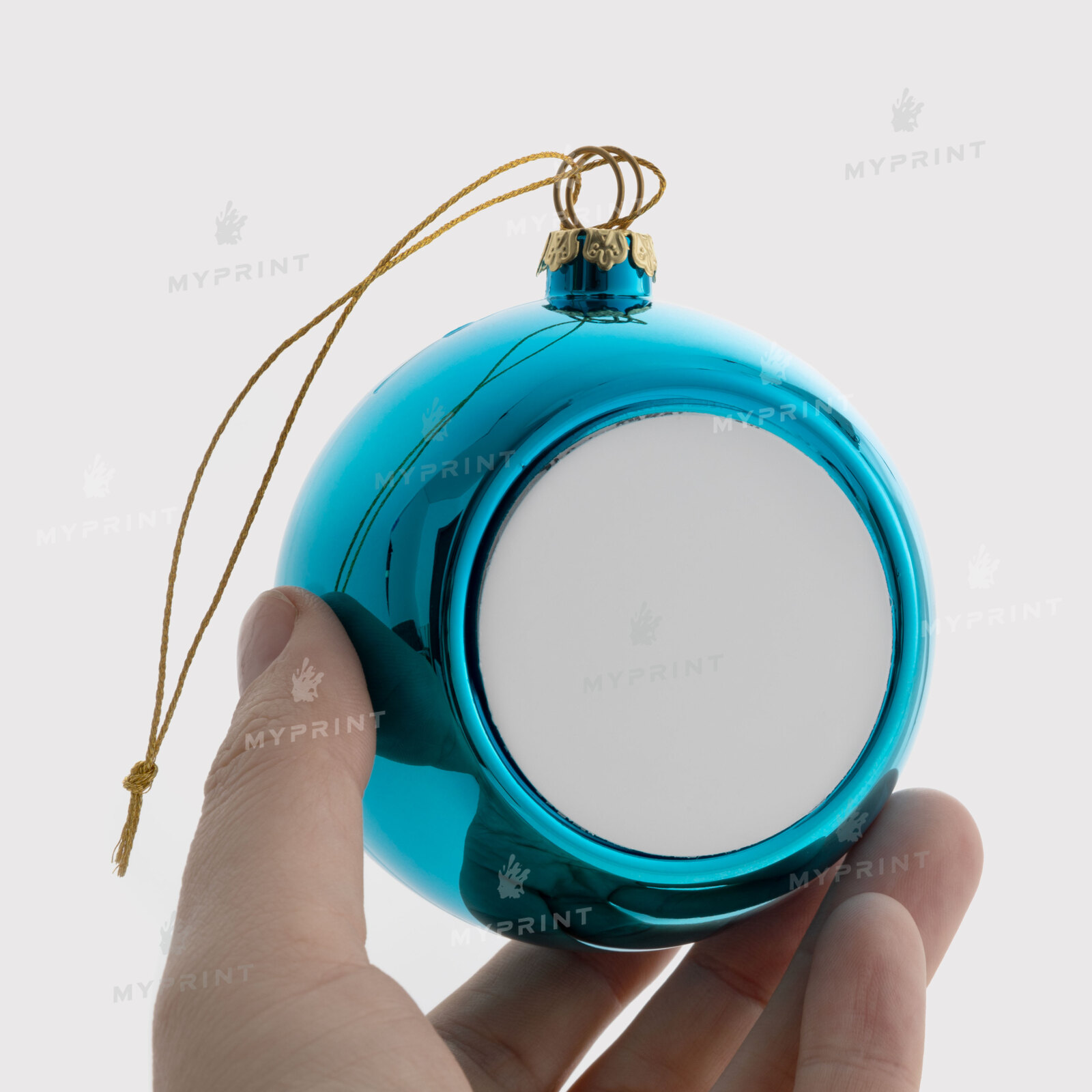 - Елочная игрушка для сублимации в форме шара голубая 8 см
