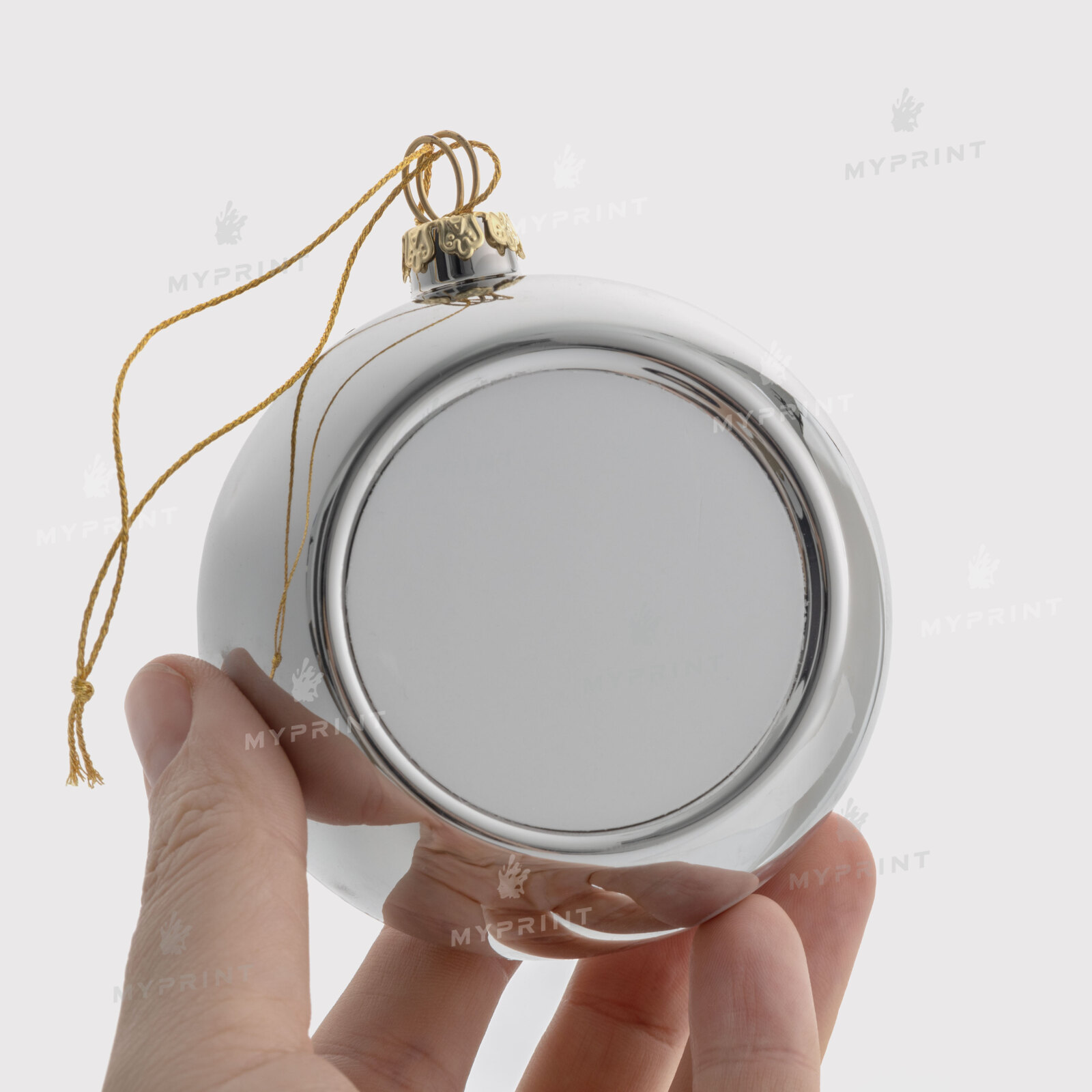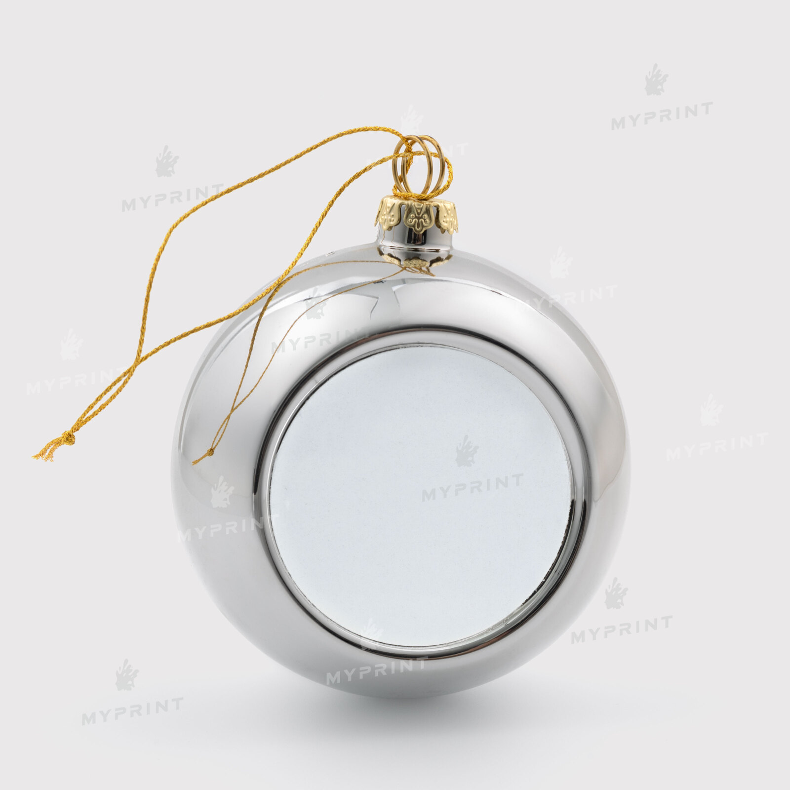 - Елочная игрушка для сублимации в форме шара серебристая 8 см