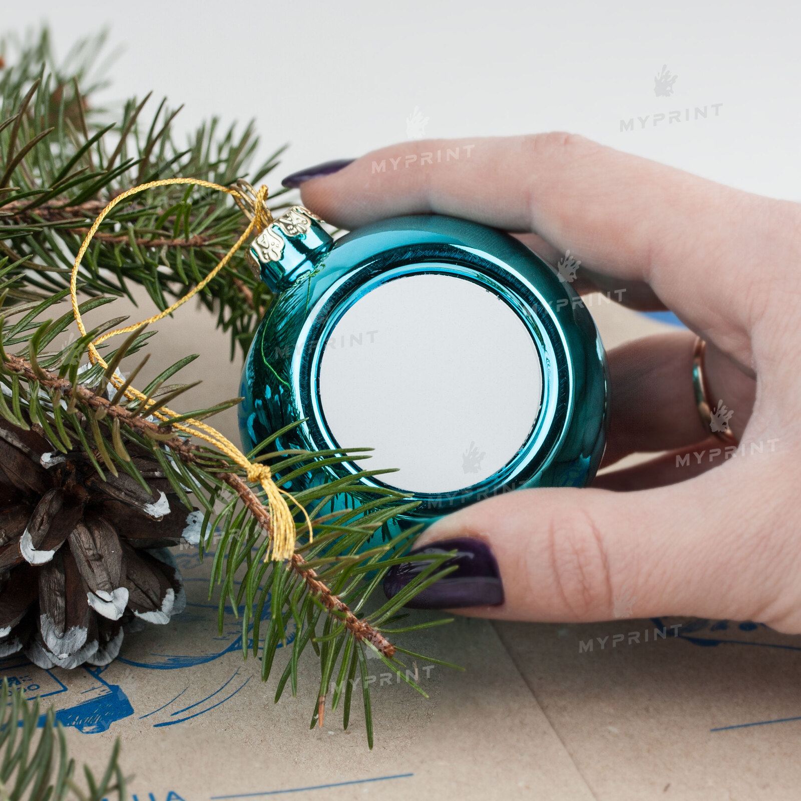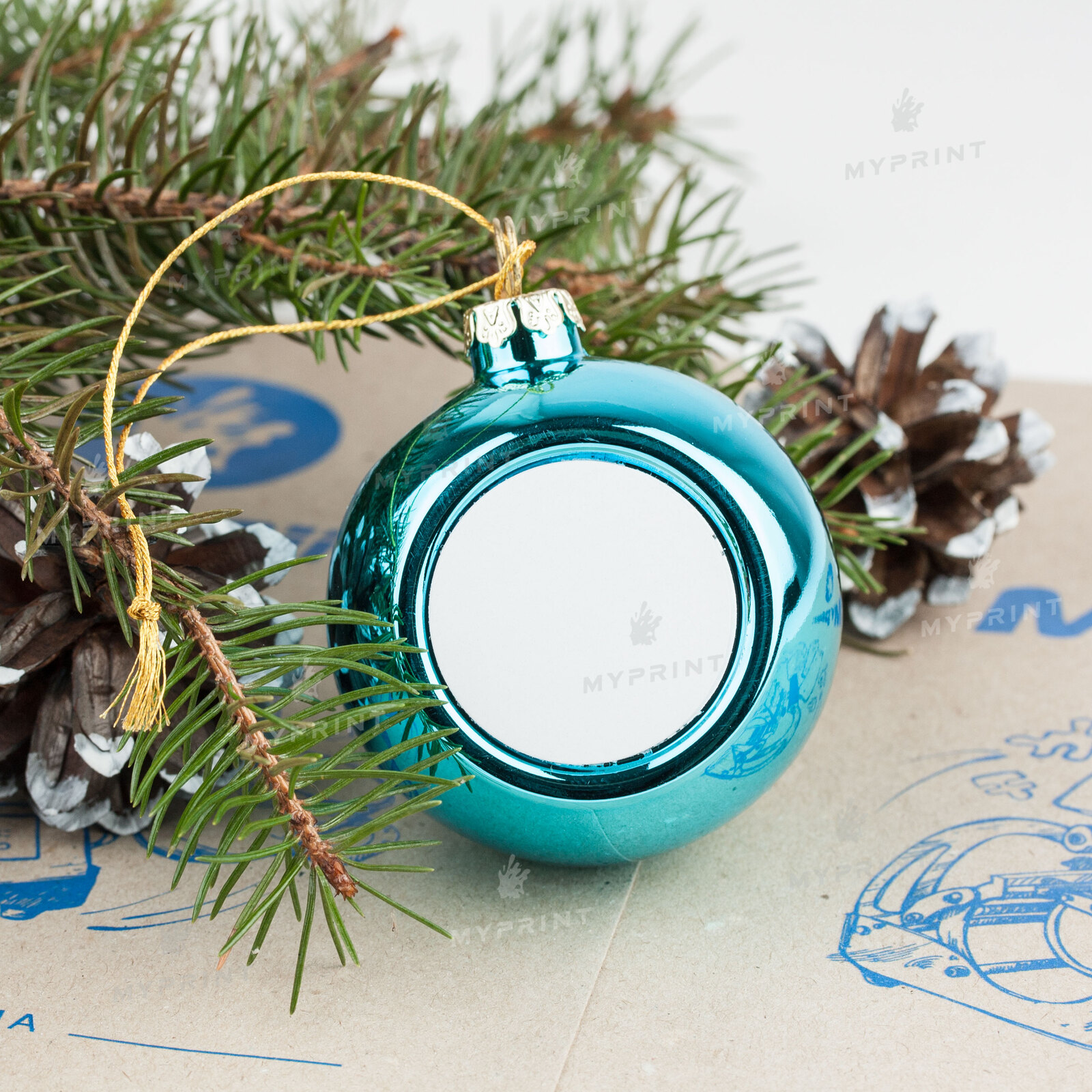 Описание Елочная игрушка для сублимации в форме шара голубая 6 см (6932)