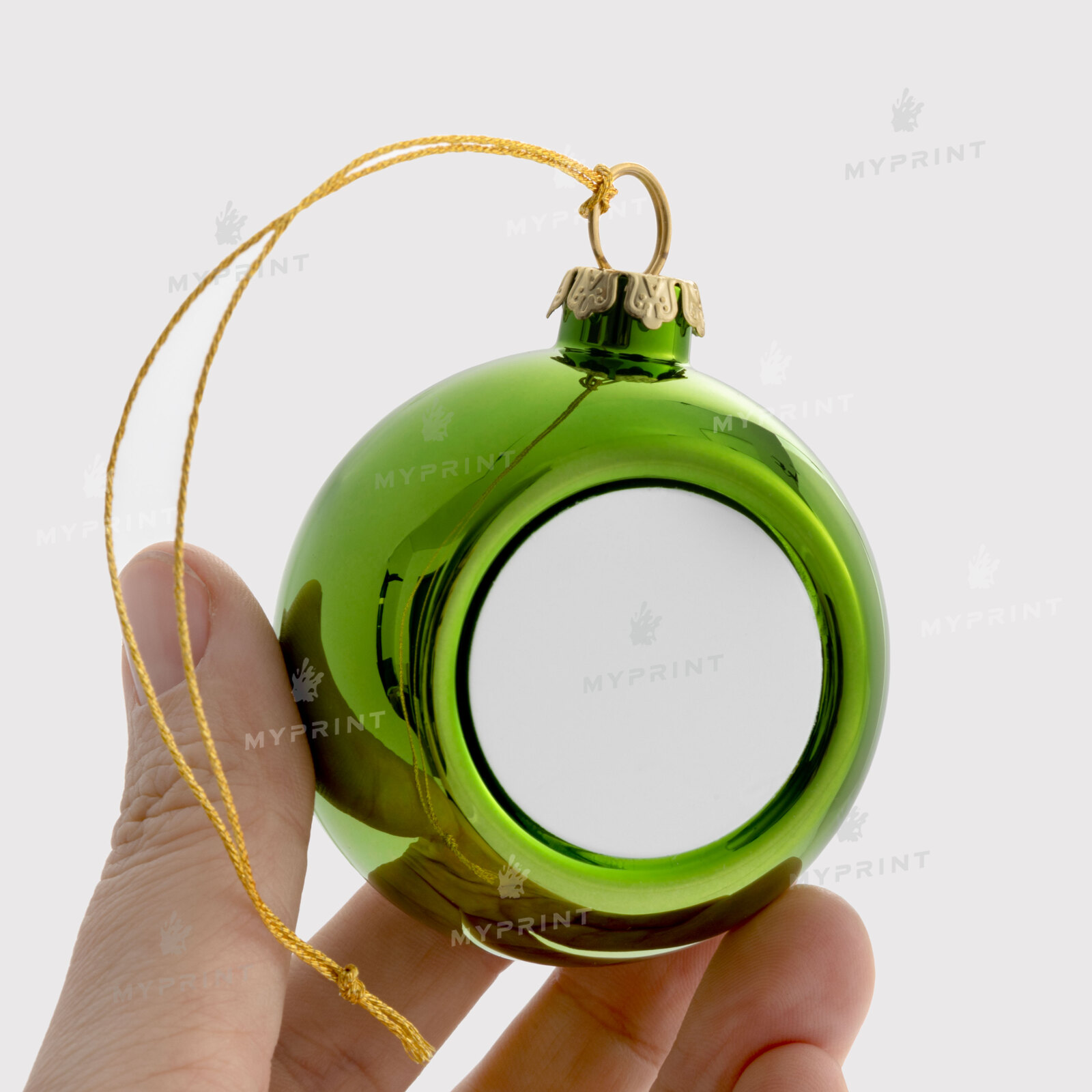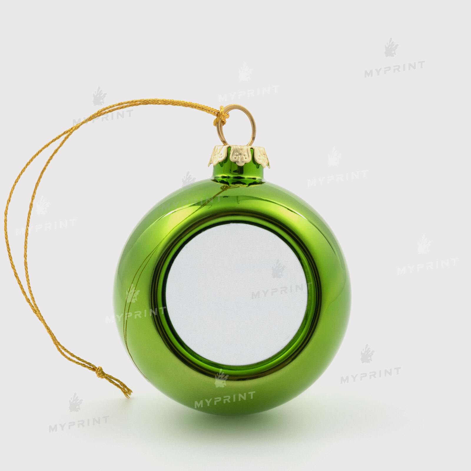 - Елочная игрушка для сублимации в форме шара зеленая 6 см
