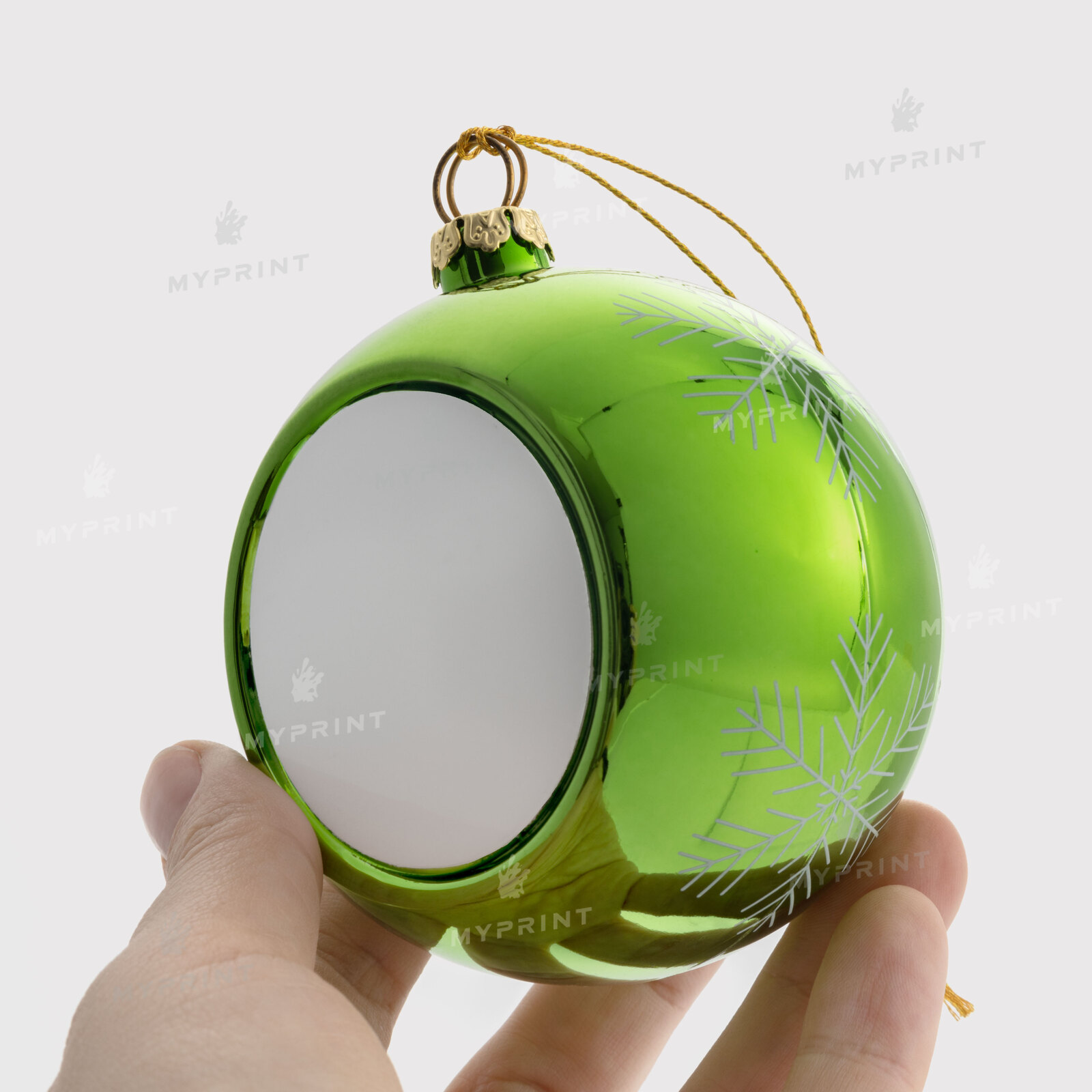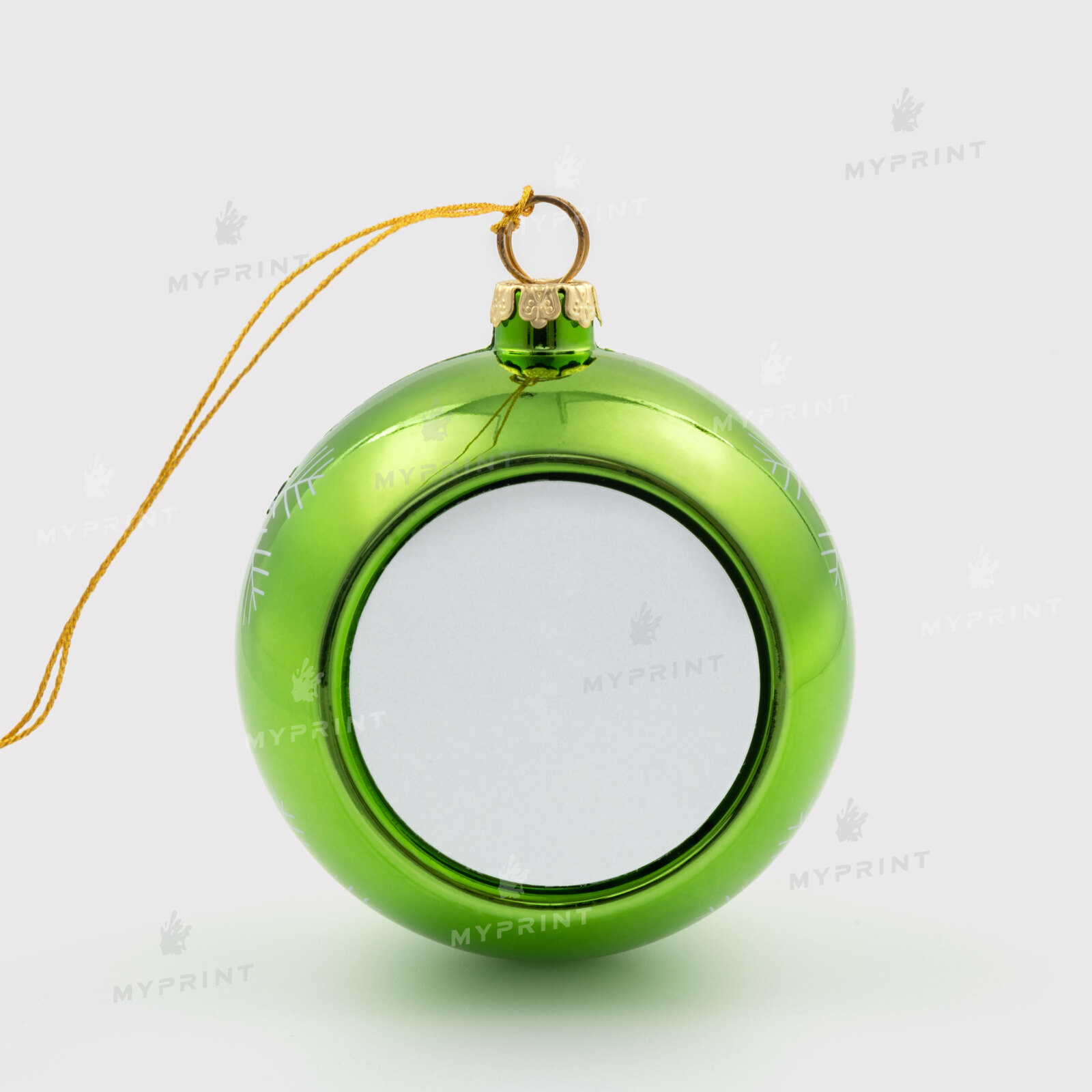 - Елочная игрушка для сублимации в форме шара со снежинкой зеленая 8 см