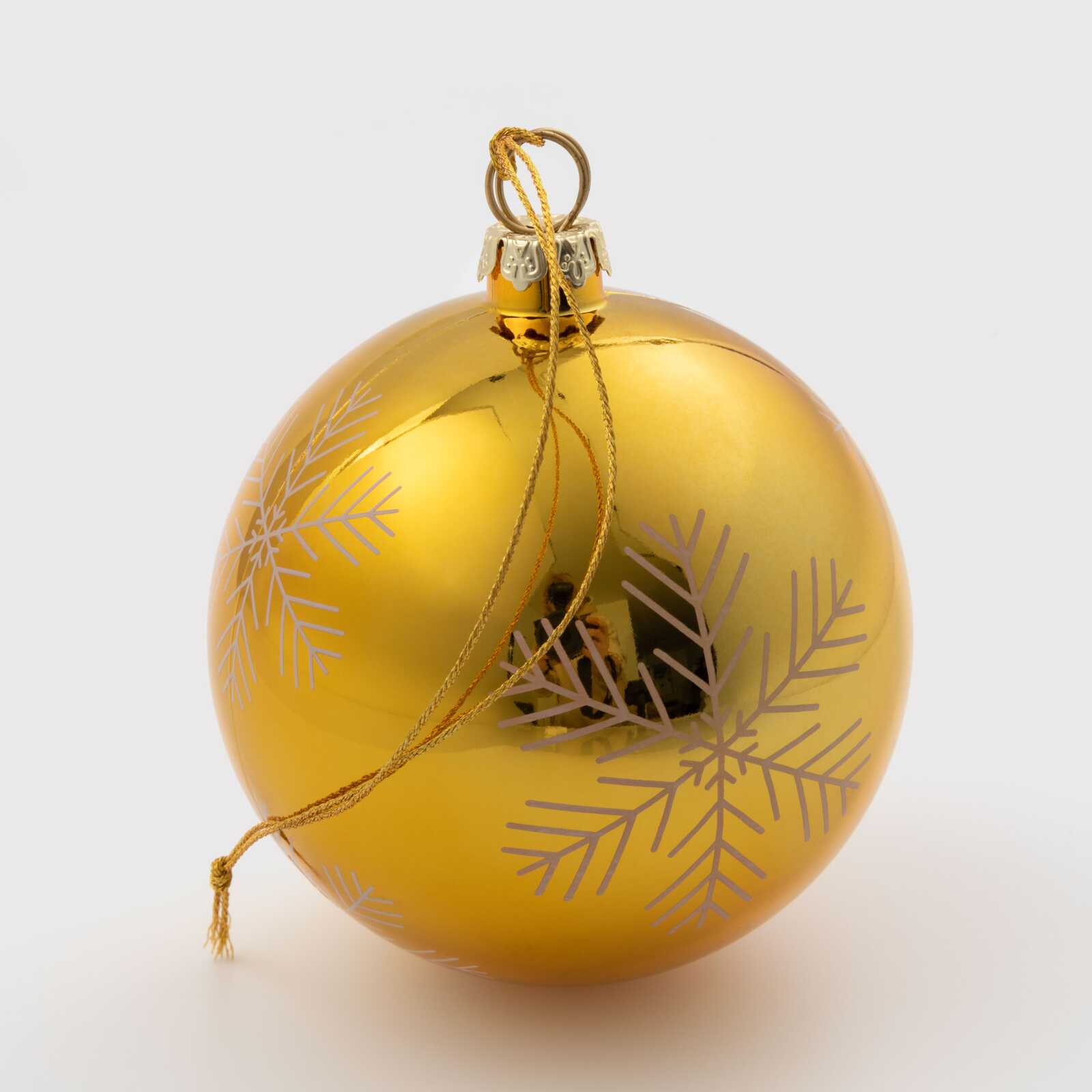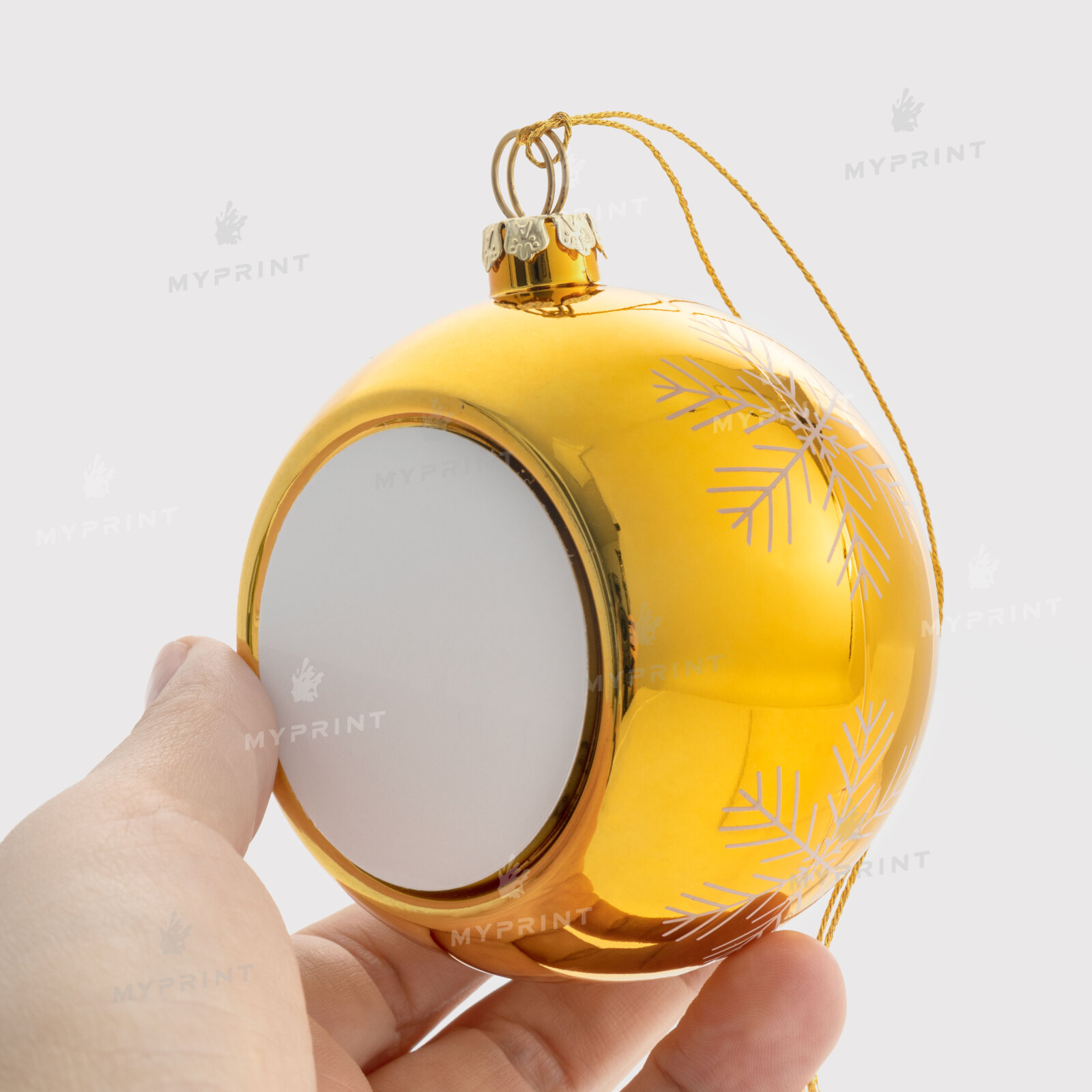 - Елочная игрушка для сублимации в форме шара со снежинкой золотистая 8 см
