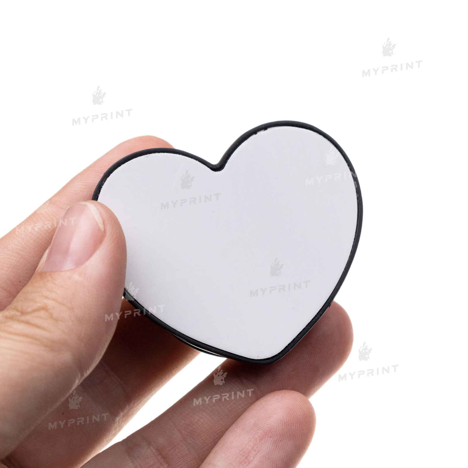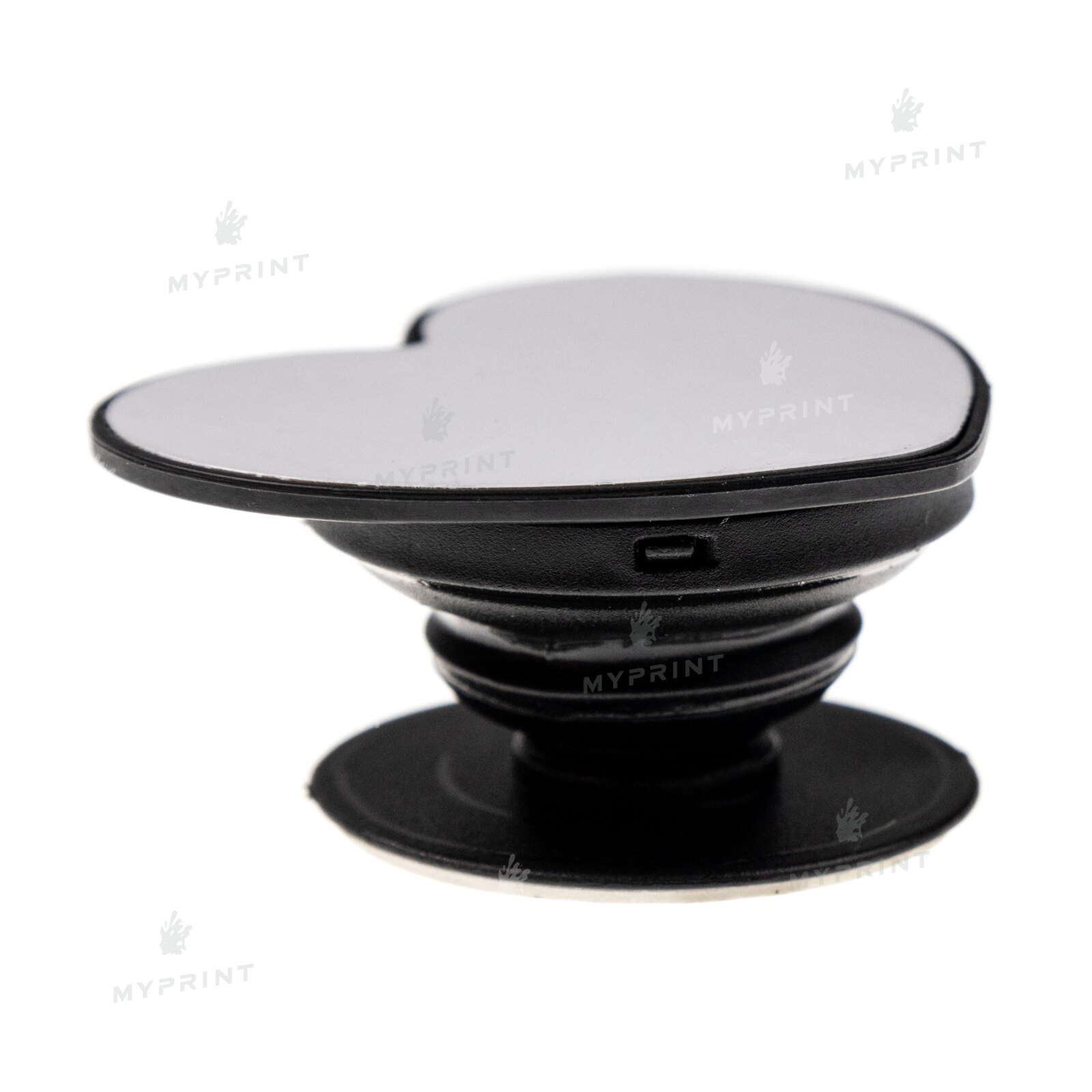 Процесс завершен. Попсокет для сублимации пластиковый в форме сердца черный 50*44 мм теперь не просто заготовка, а готовое изделие с уникальным изображением или фотографией.
