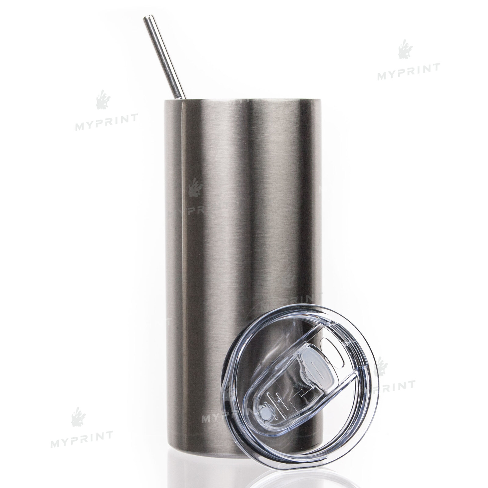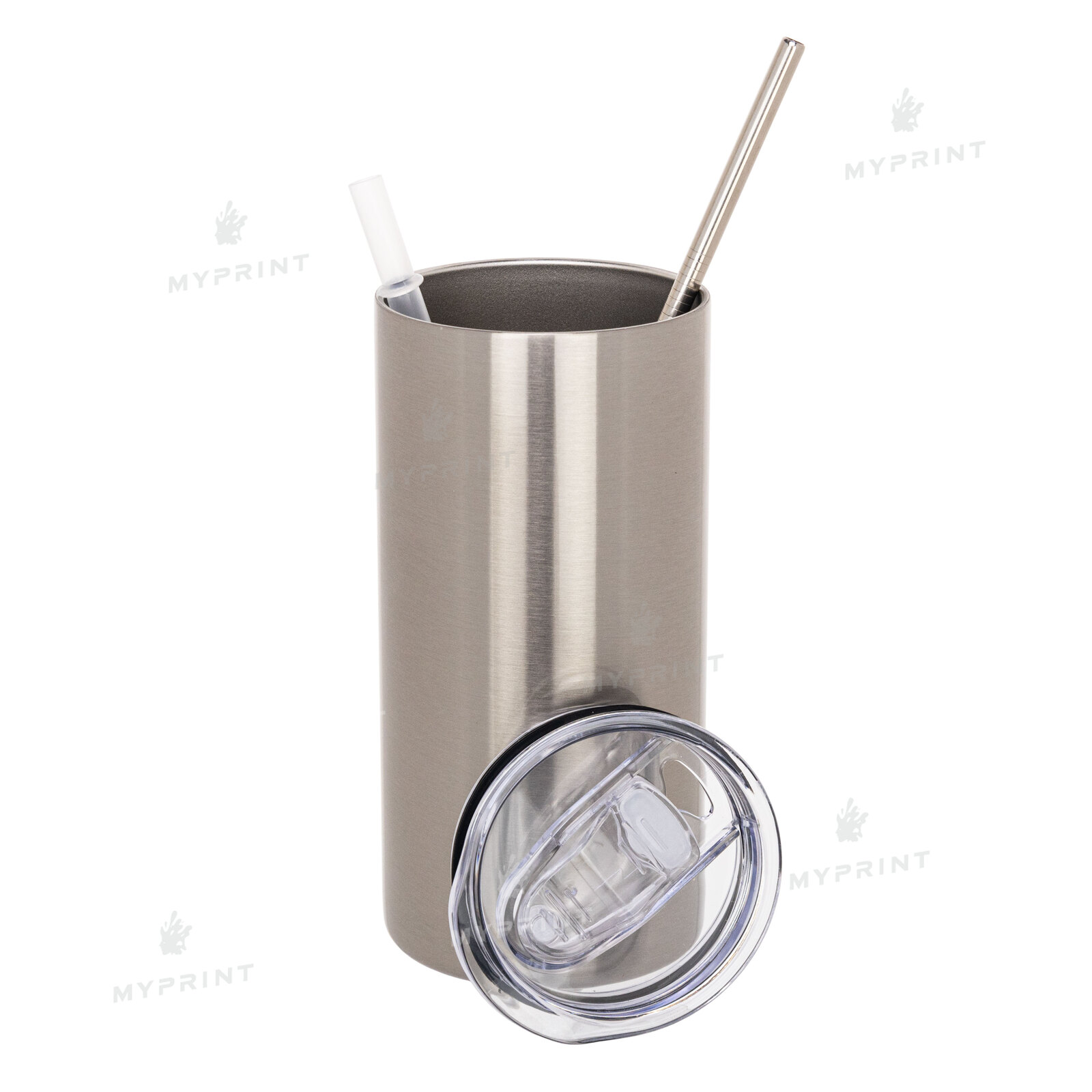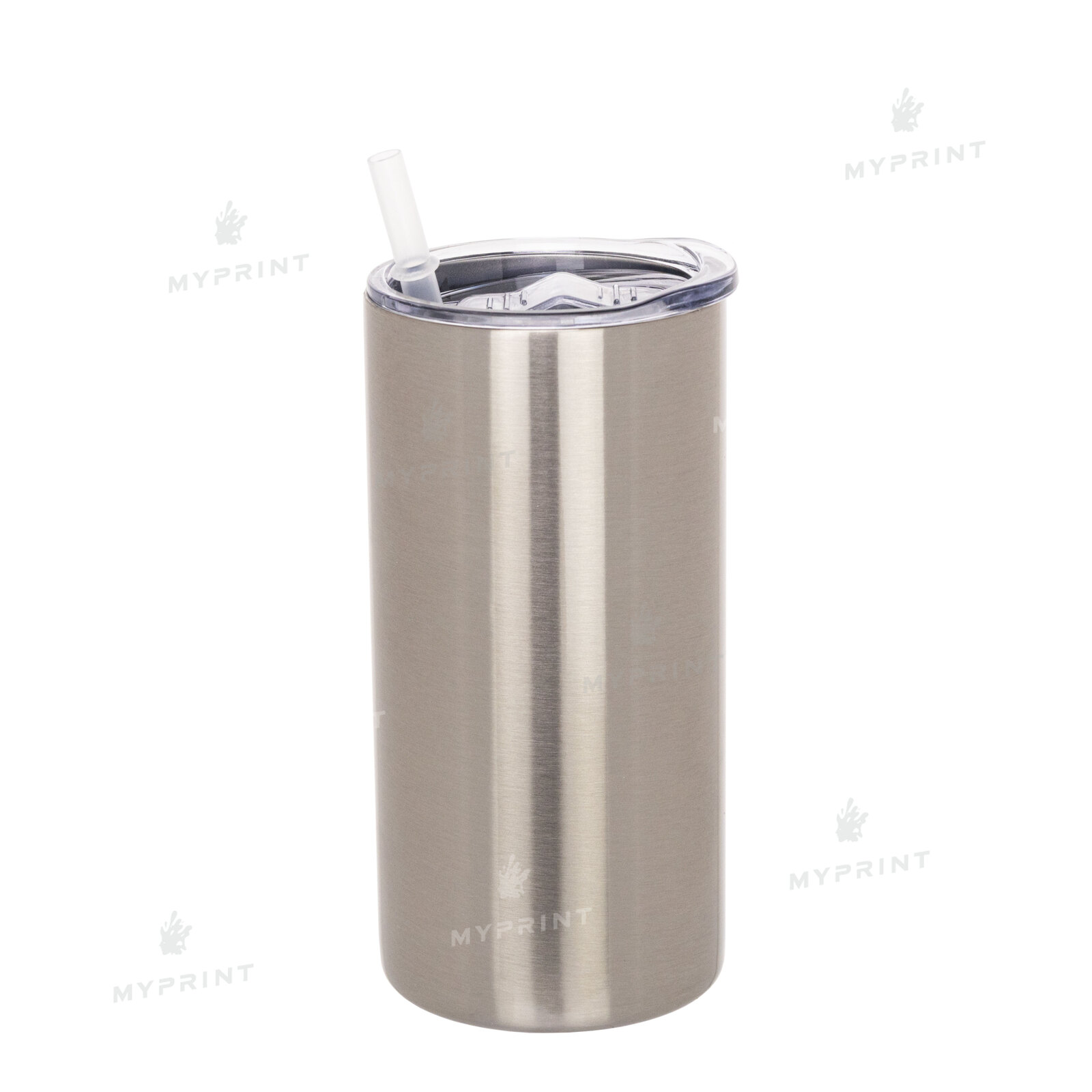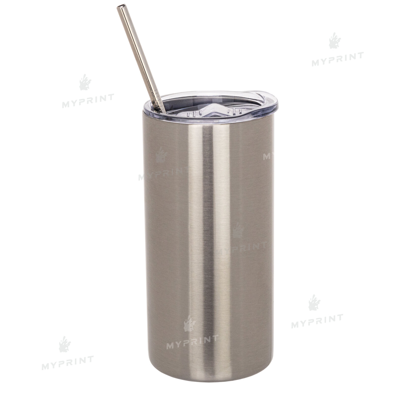 Термокружка для сублимации "Tumbler" с металлической трубочкой серебристая 450 мл (8365)