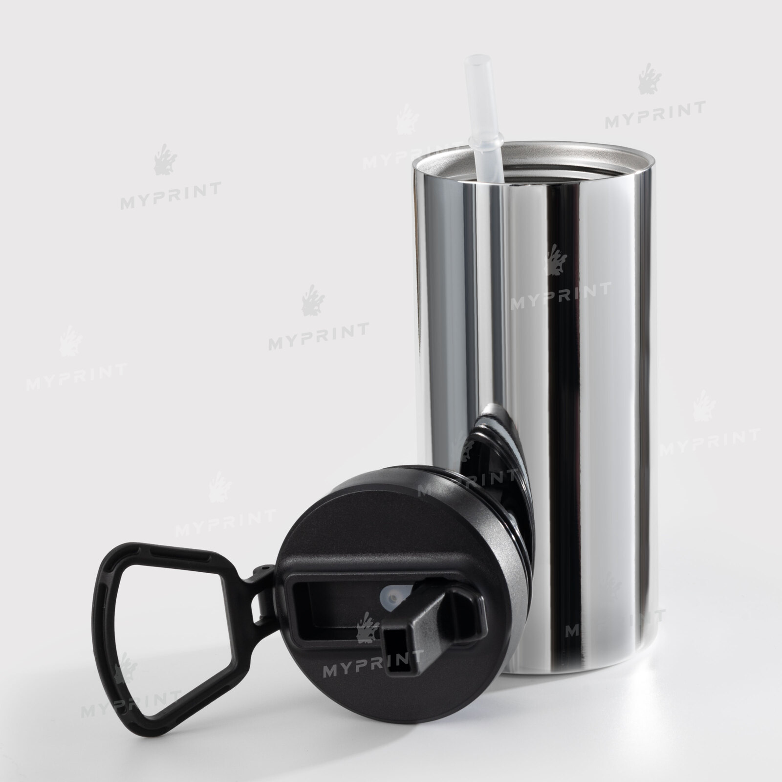 4. Помещаем нашу заготовку (Термокружка для сублимации "Starbucks" Style 2 металлик серебристая 450 мл) в термопресс для термосов и термокружек и нажимаем на кнопку старта обратного отсчета времени.