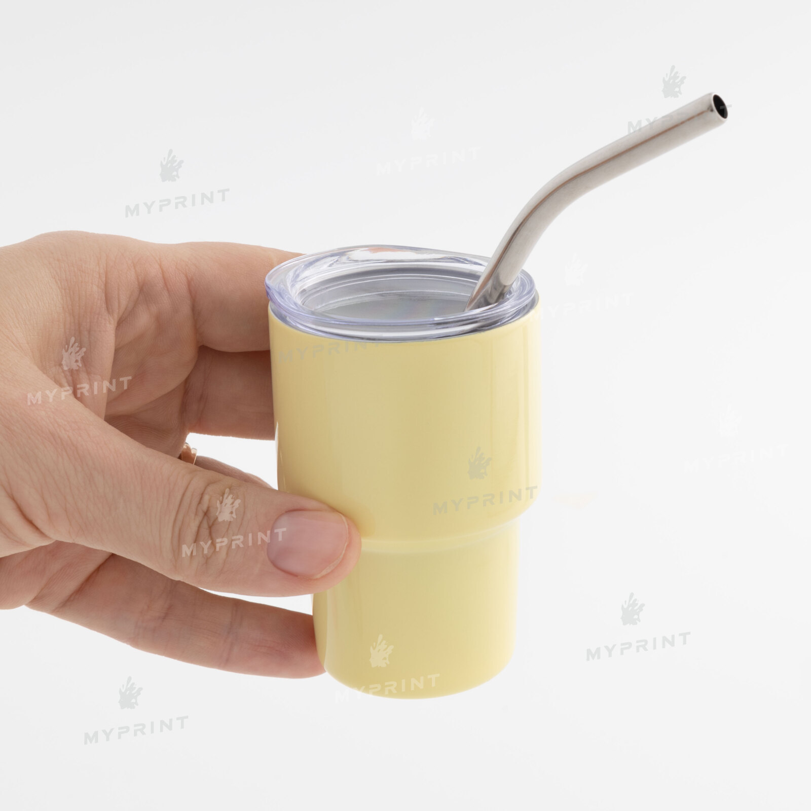- Термостакан для сублимации с металлической трубочкой желтый 70 мл