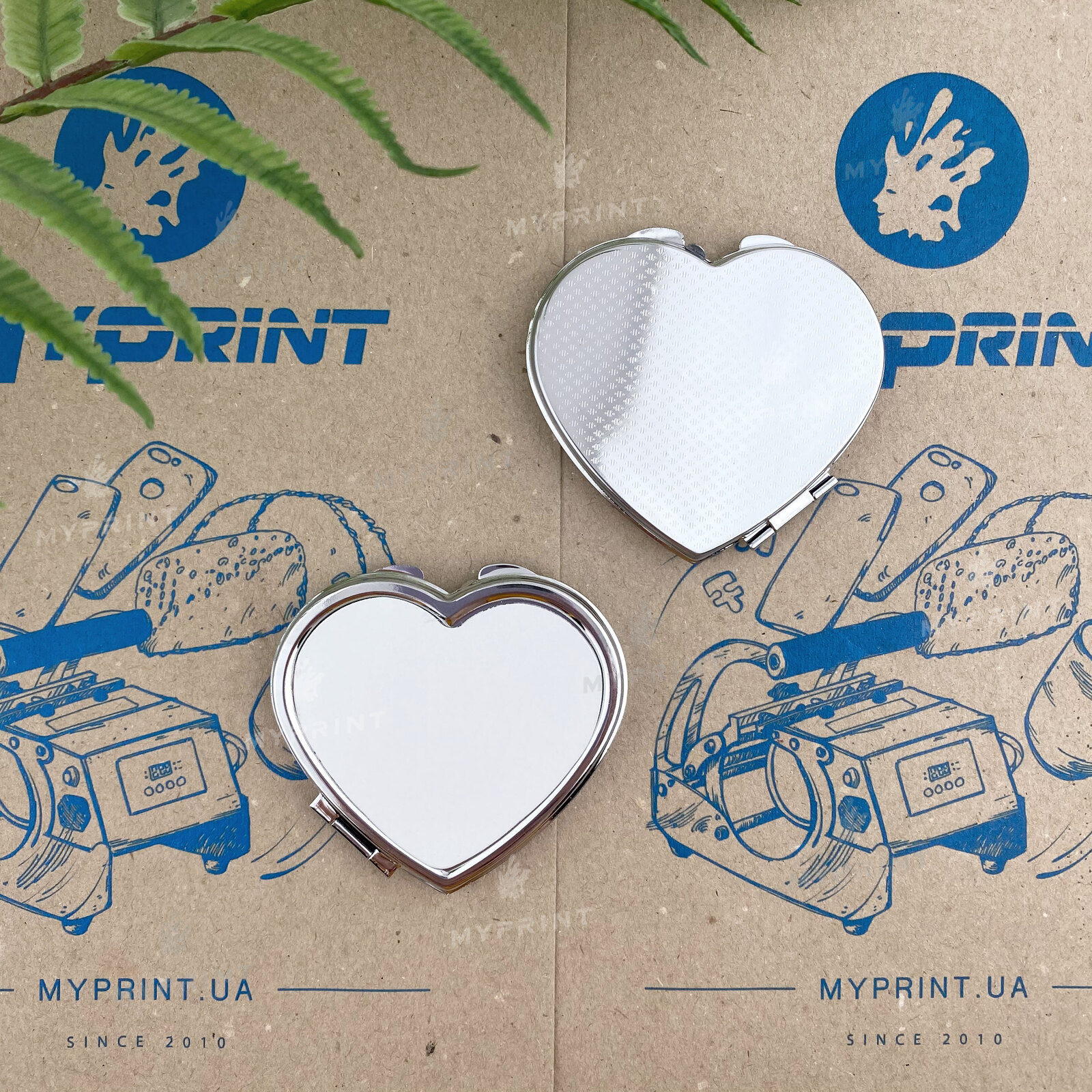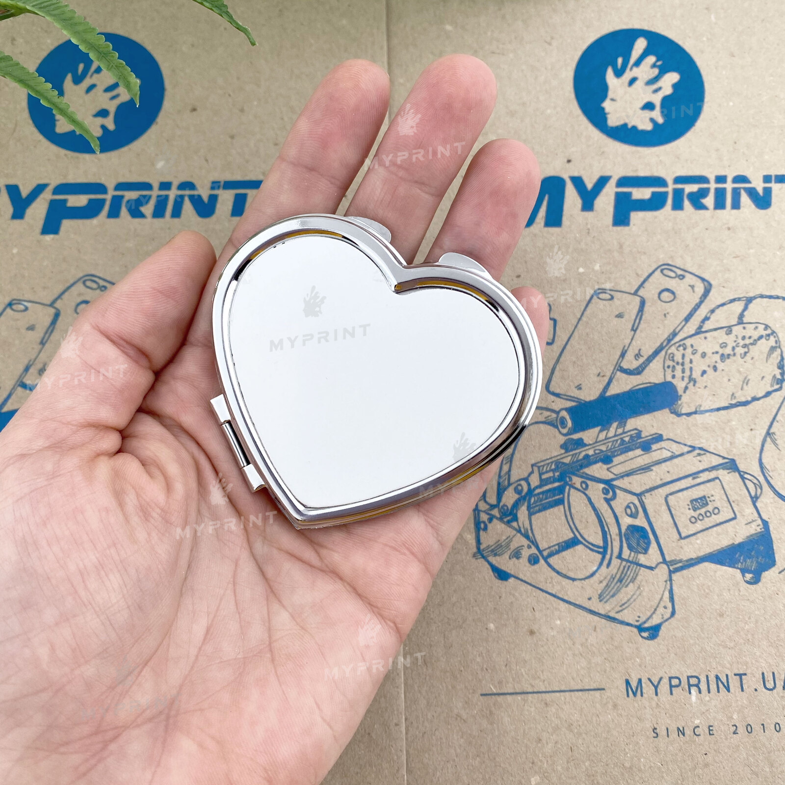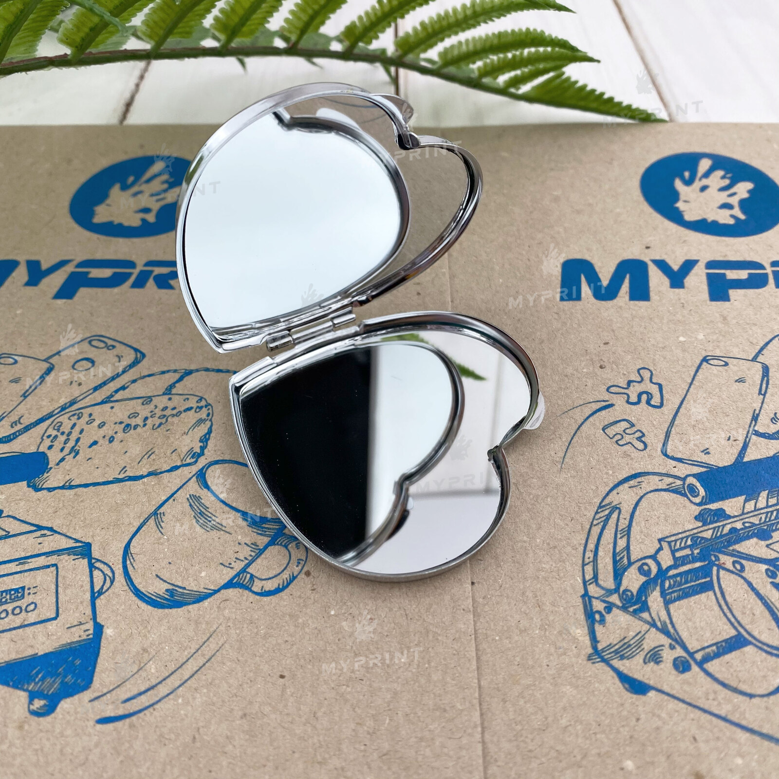 Процесс завершен. Зеркальце для сублимации металлическое в форме сердца 6*5,5 см теперь не просто заготовка, а готовое изделие с уникальным изображением или фотографией.