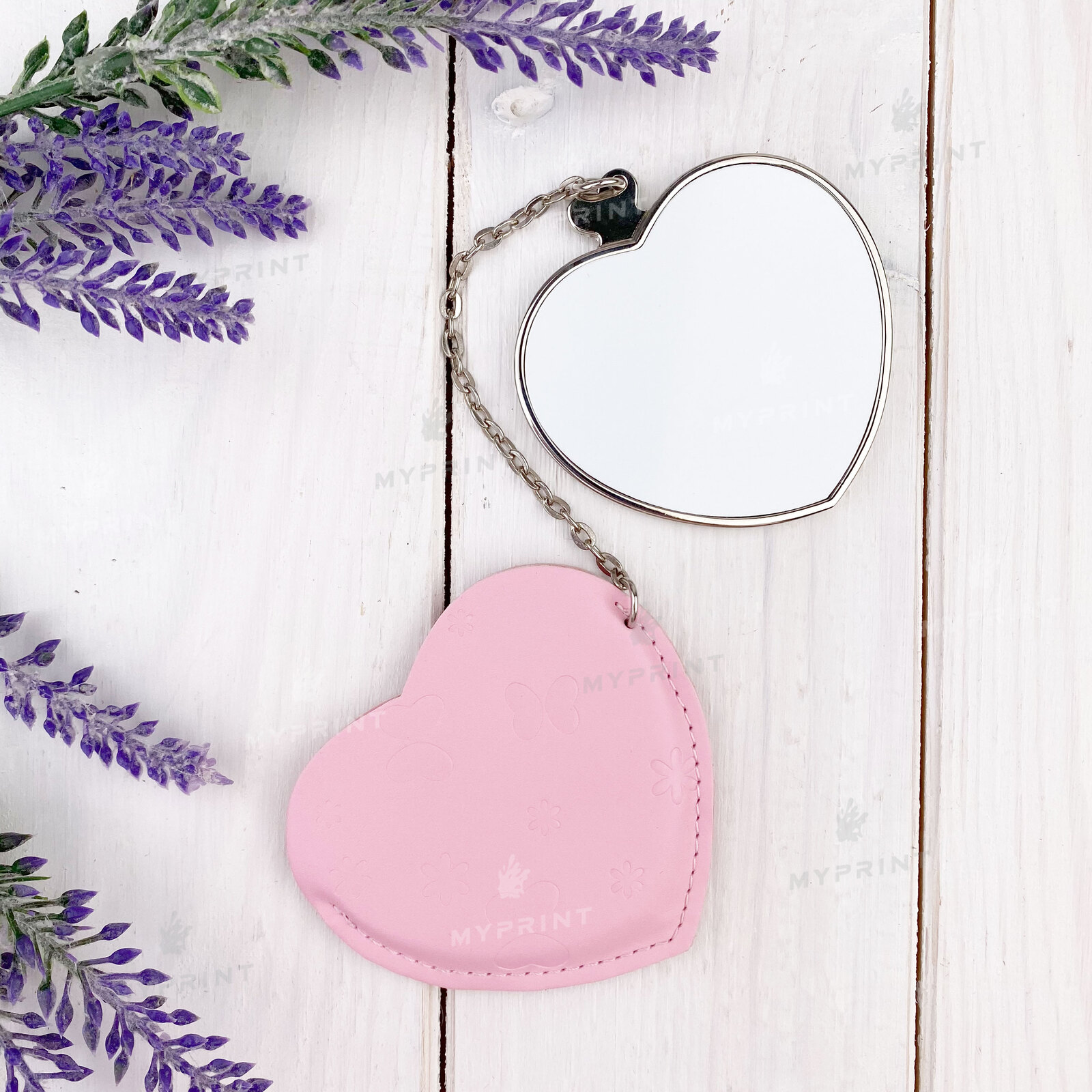- Зеркальце для сублимации металлическое в форме сердца в розовом чехле 6,3*6 см