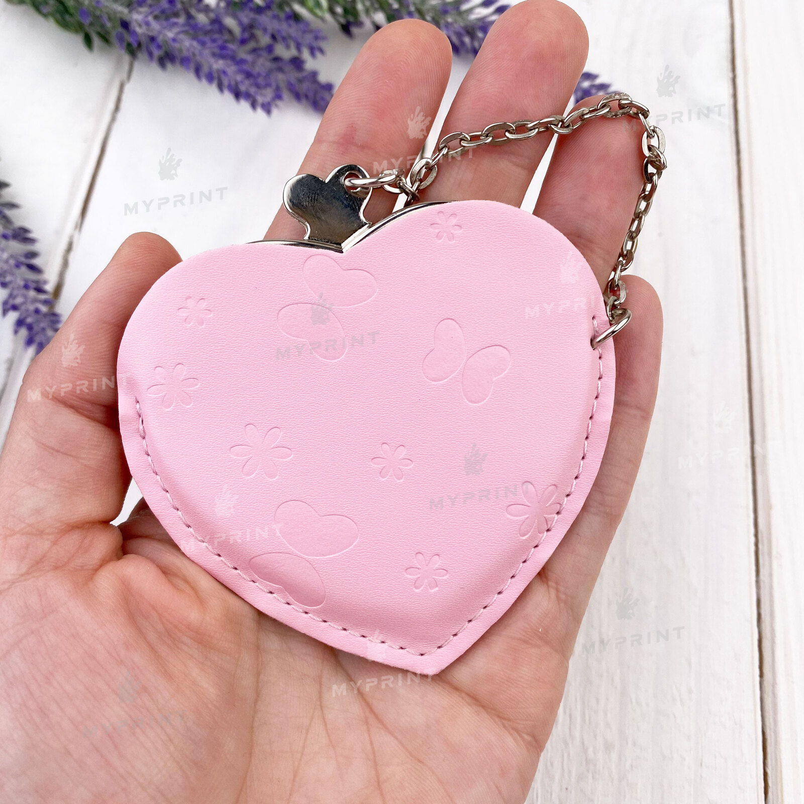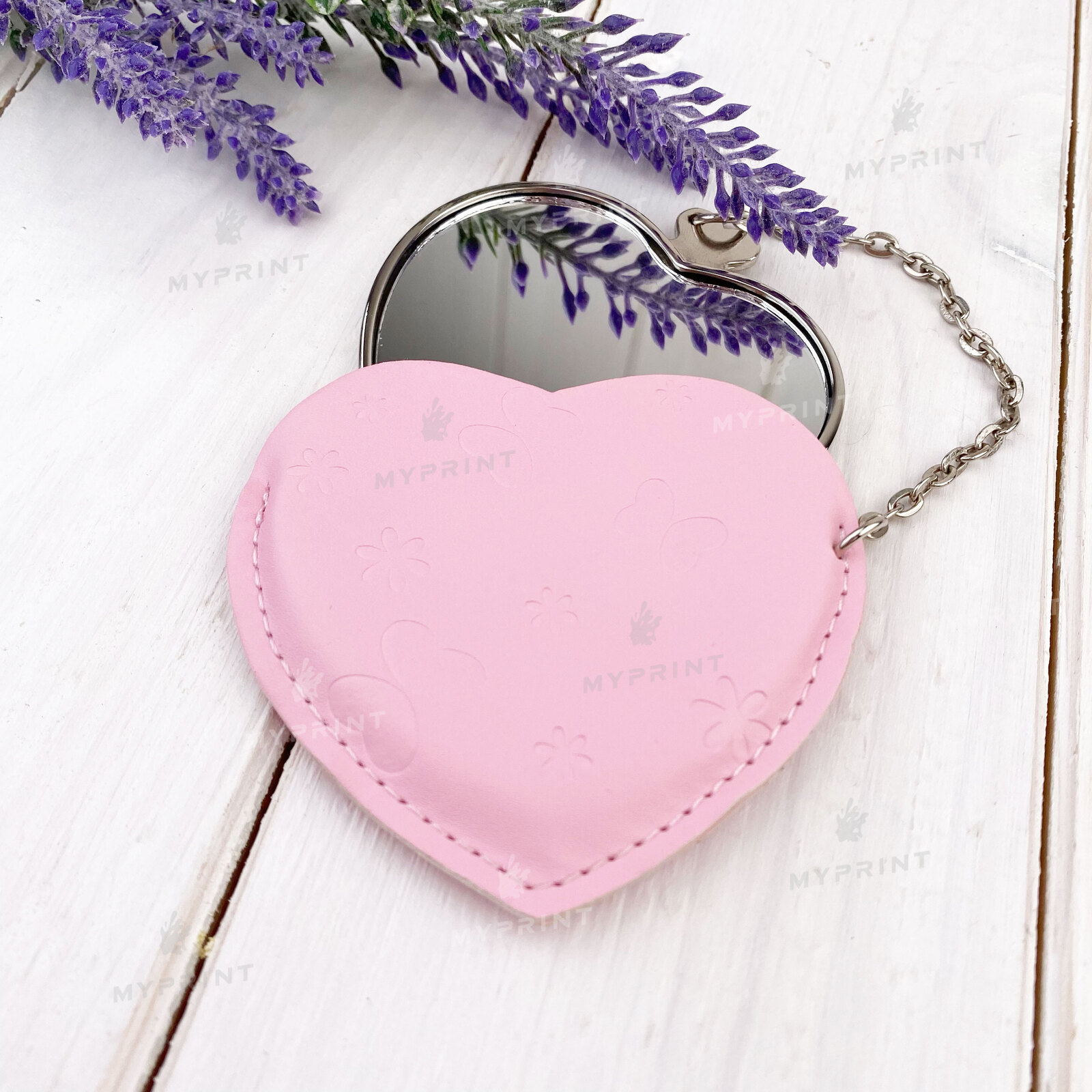 Зеркальце для сублимации металлическое в форме сердца в розовом чехле 6,3*6 см (7546)
