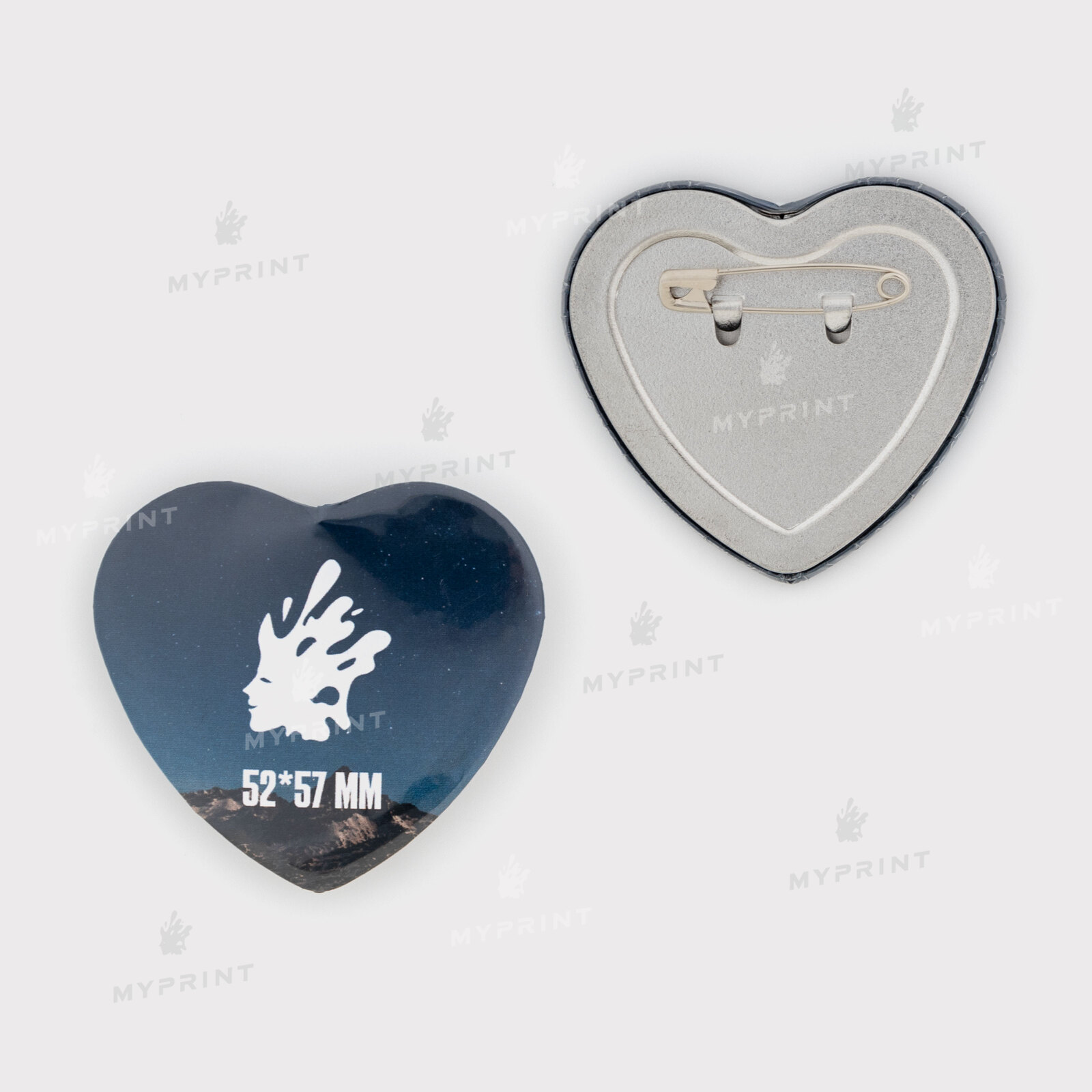 Процесс завершен. Заготовка для закатного значка сердце 52*57 мм теперь готовое изделие с уникальным изображением или фотографией.