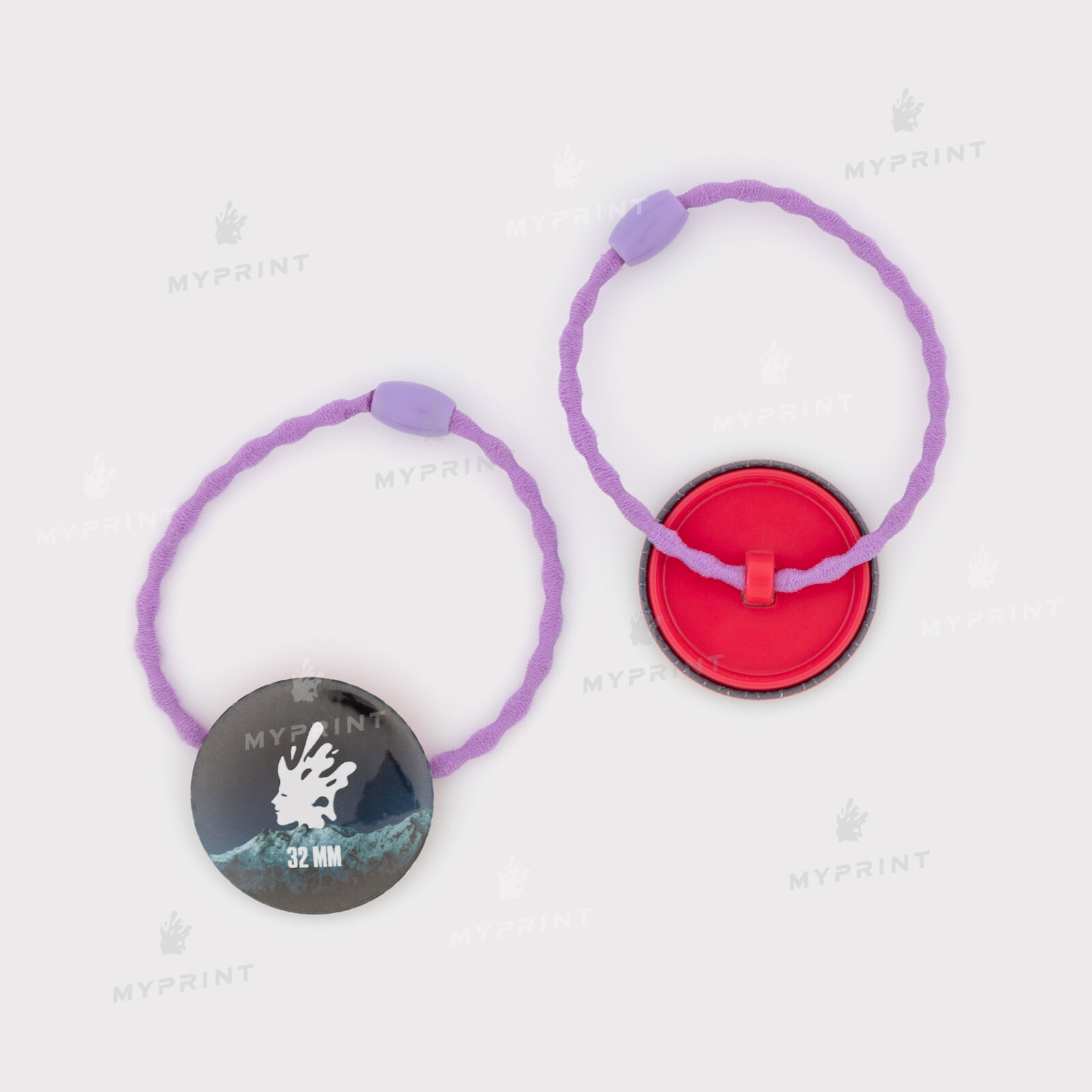 Процесс завершен. Заготовка для закатной резинки для волос 32 мм теперь готовое изделие с уникальным изображением или фотографией.