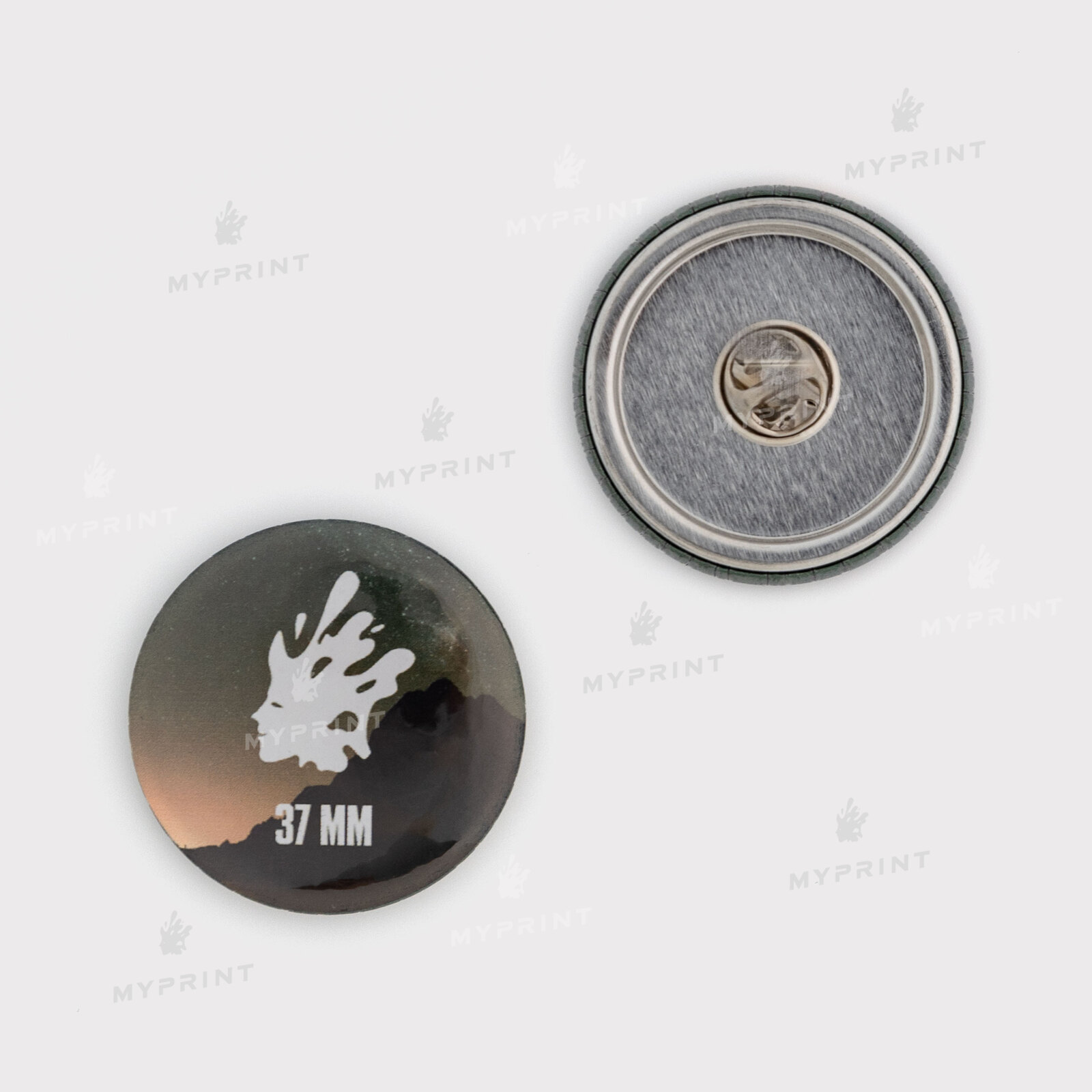 Процесс завершен. Заготовка для закатного значка бабочки 37 мм теперь готовое изделие с уникальным изображением или фотографией.