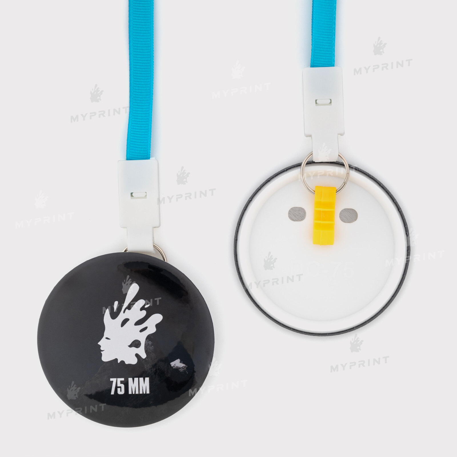 Процесс завершен. Заготовка для закатной медали 75 мм с голубой ленточкой My Print ptb75 теперь готовое изделие с уникальным изображением или фотографией.