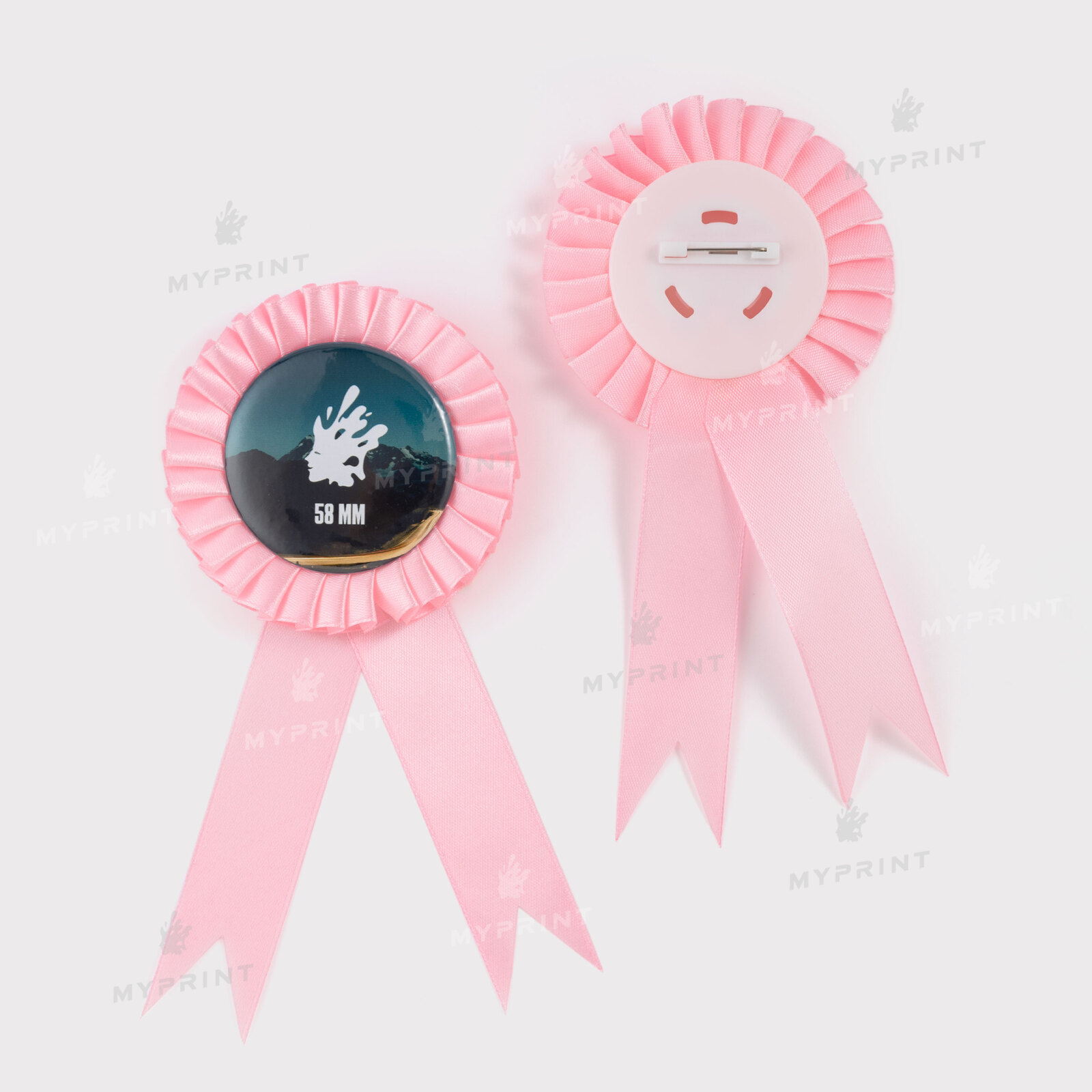 Процесс завершен. Заготовка для закатной медали-розетки 58 мм розовая My Print rb58p теперь готовое изделие с уникальным изображением или фотографией.