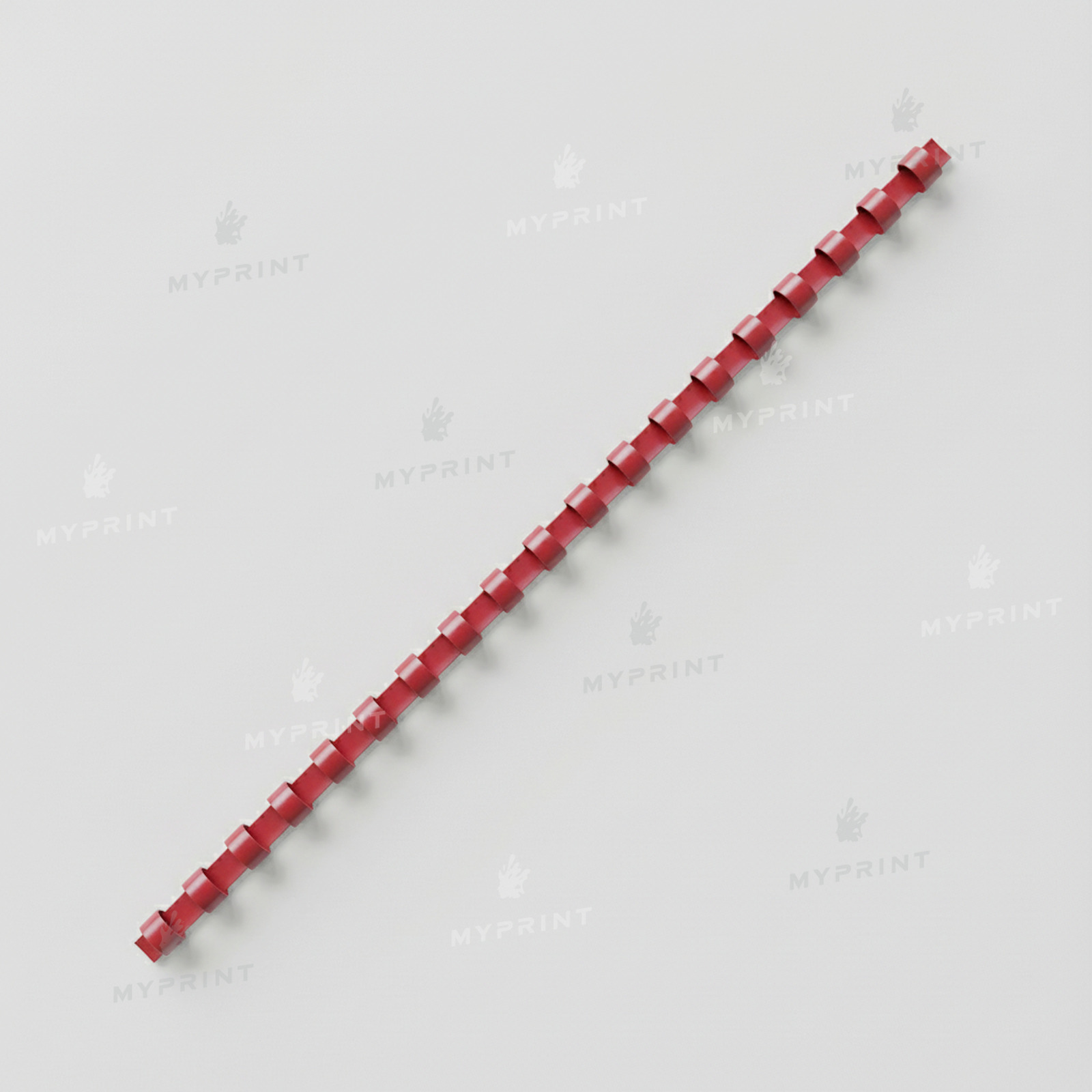 Пластикова пружина (гребінка) для брошурування А4, 21 петля, 6 мм, червона, 100 шт. (12716)