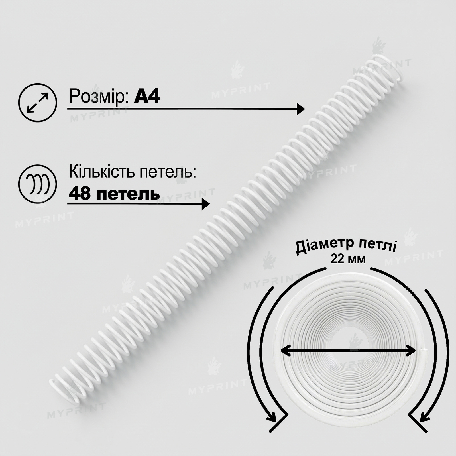 Пластикова спіраль для брошурування А4, 4:1, 48 петель, 22 мм, біла, 100 шт. (12792)