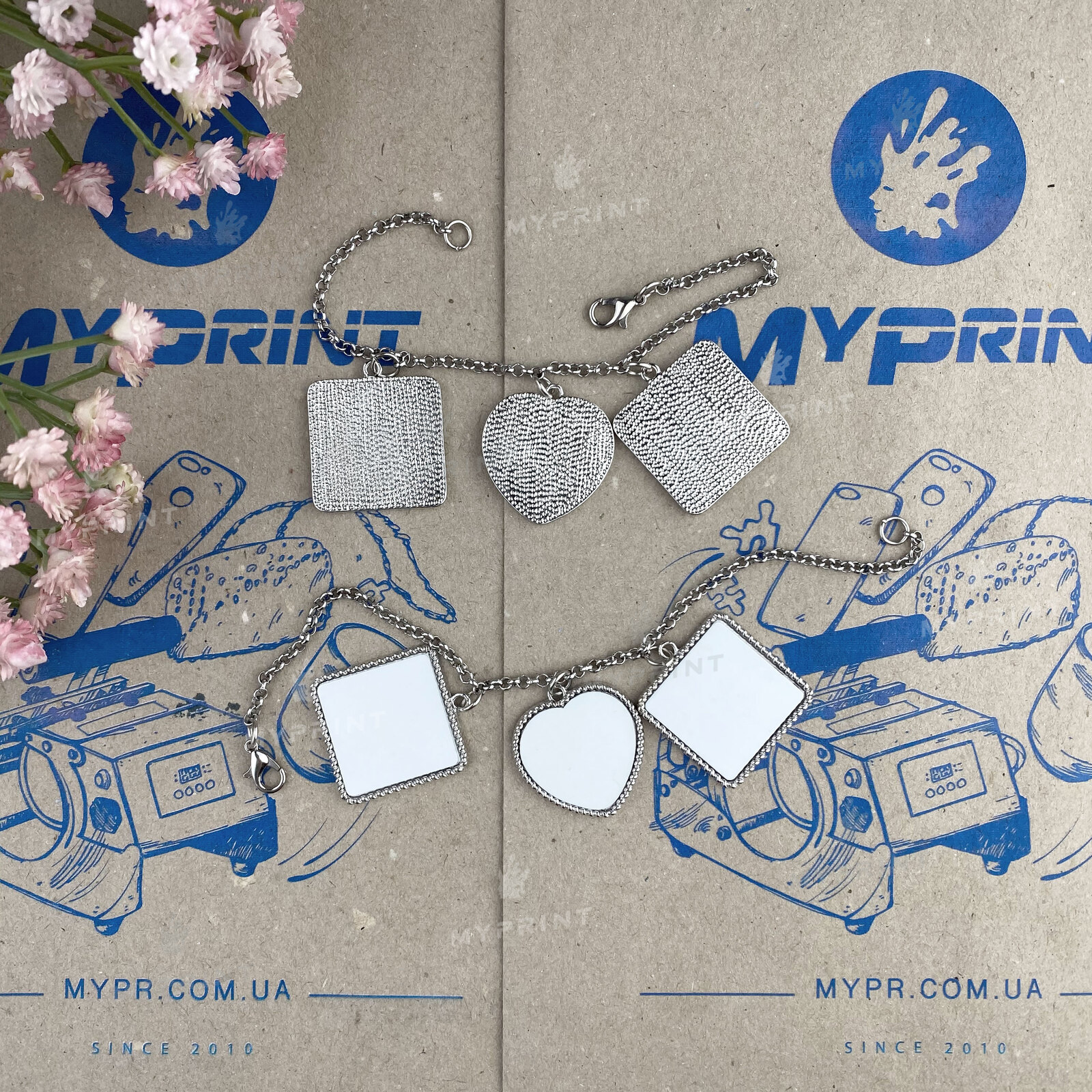 - Браслет для сублімації з вставкою у формі квадратів 23*23 мм і серця 21*23 мм