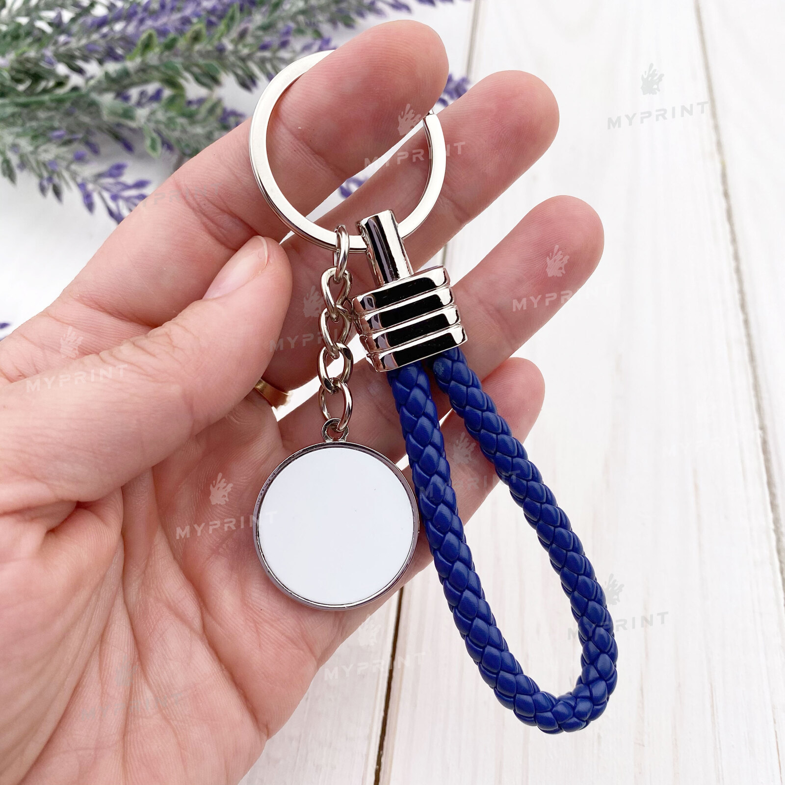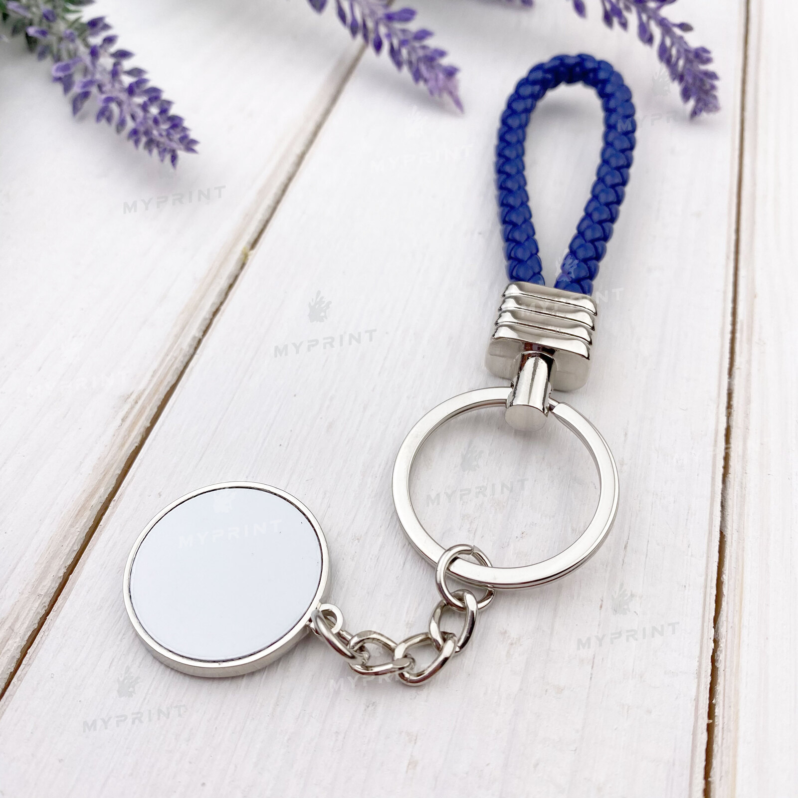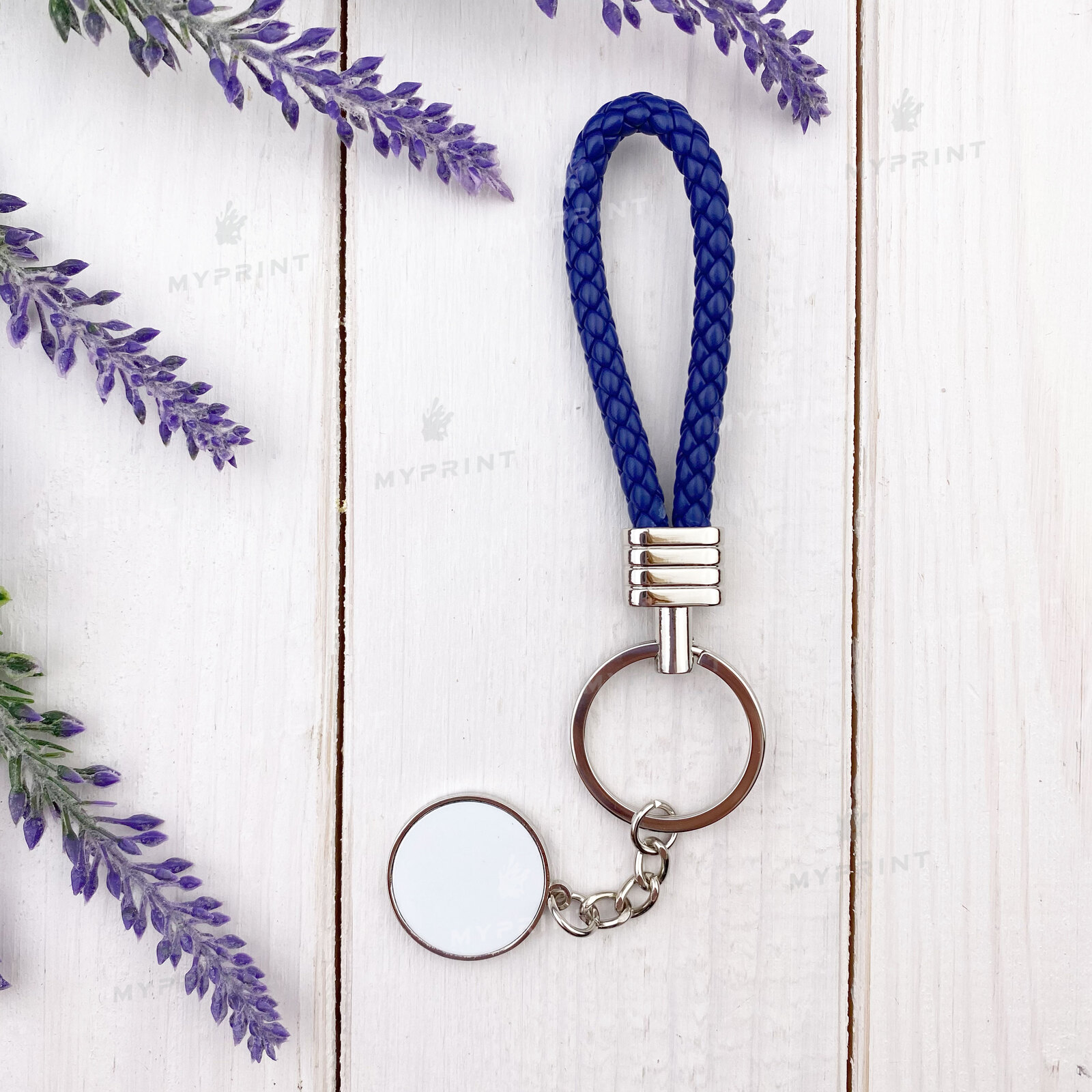 • Брелок для сублімації односторонній круглий з синім шкіряним плетеним шнурком d = 25 мм (7633) - фото 2 - Заготовки для сублімації