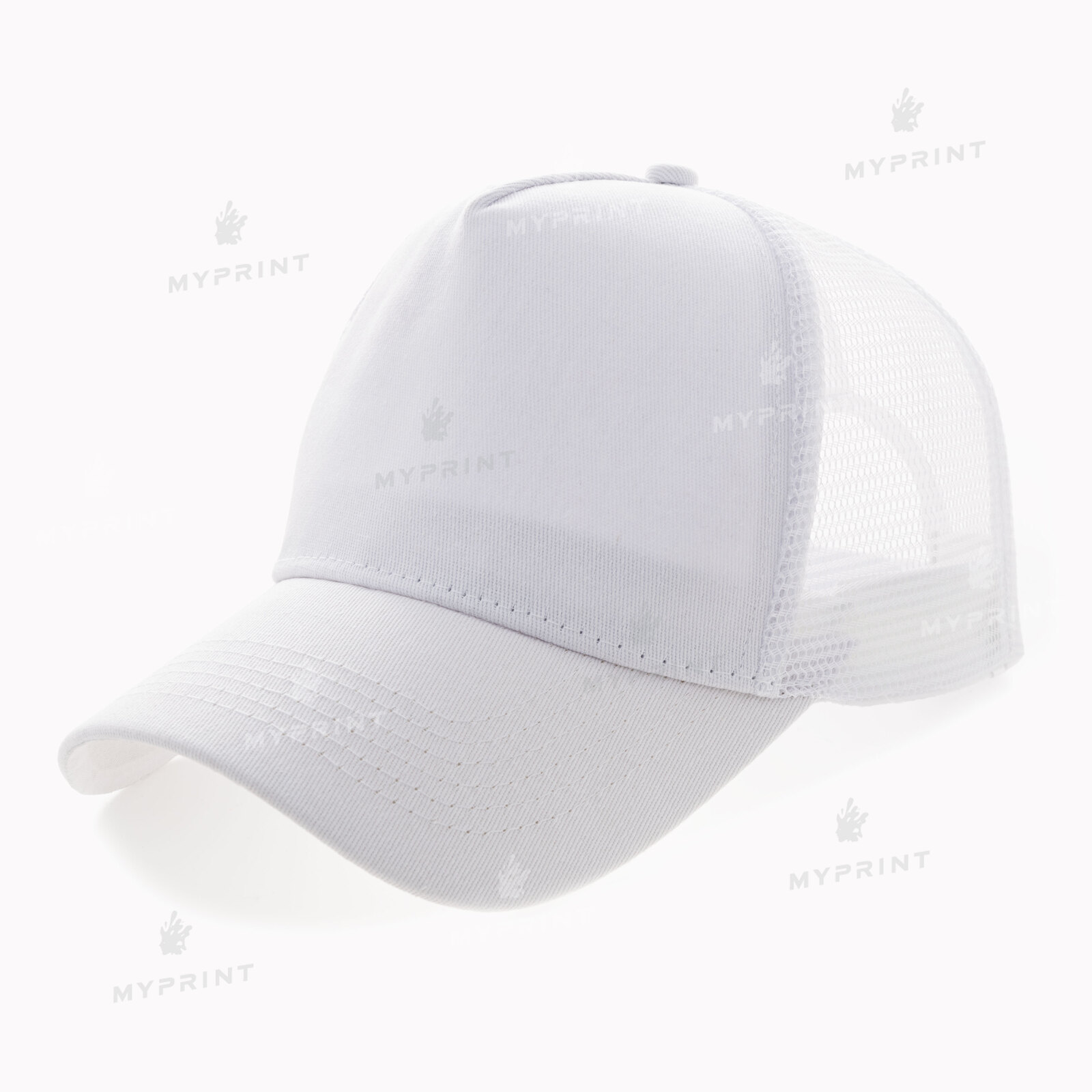 - Кепка п'ятиклинка для термопереносу бавовняна з сіткою біла.
