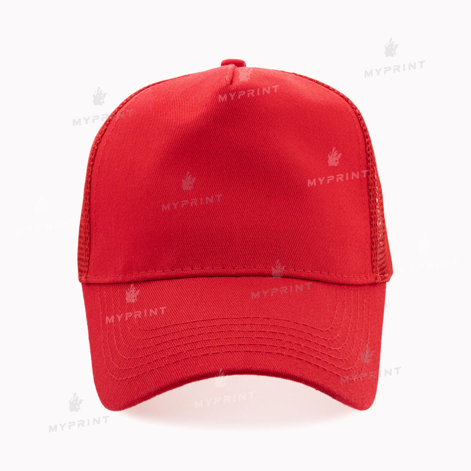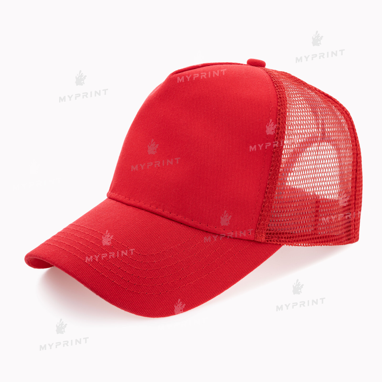 - Кепка п'ятиклинка для термопереносу бавовняна з сіткою червона.