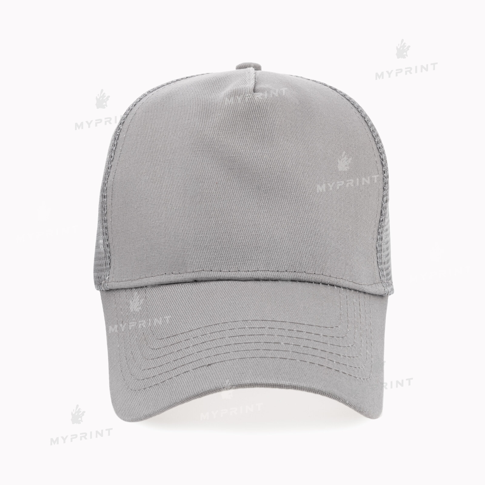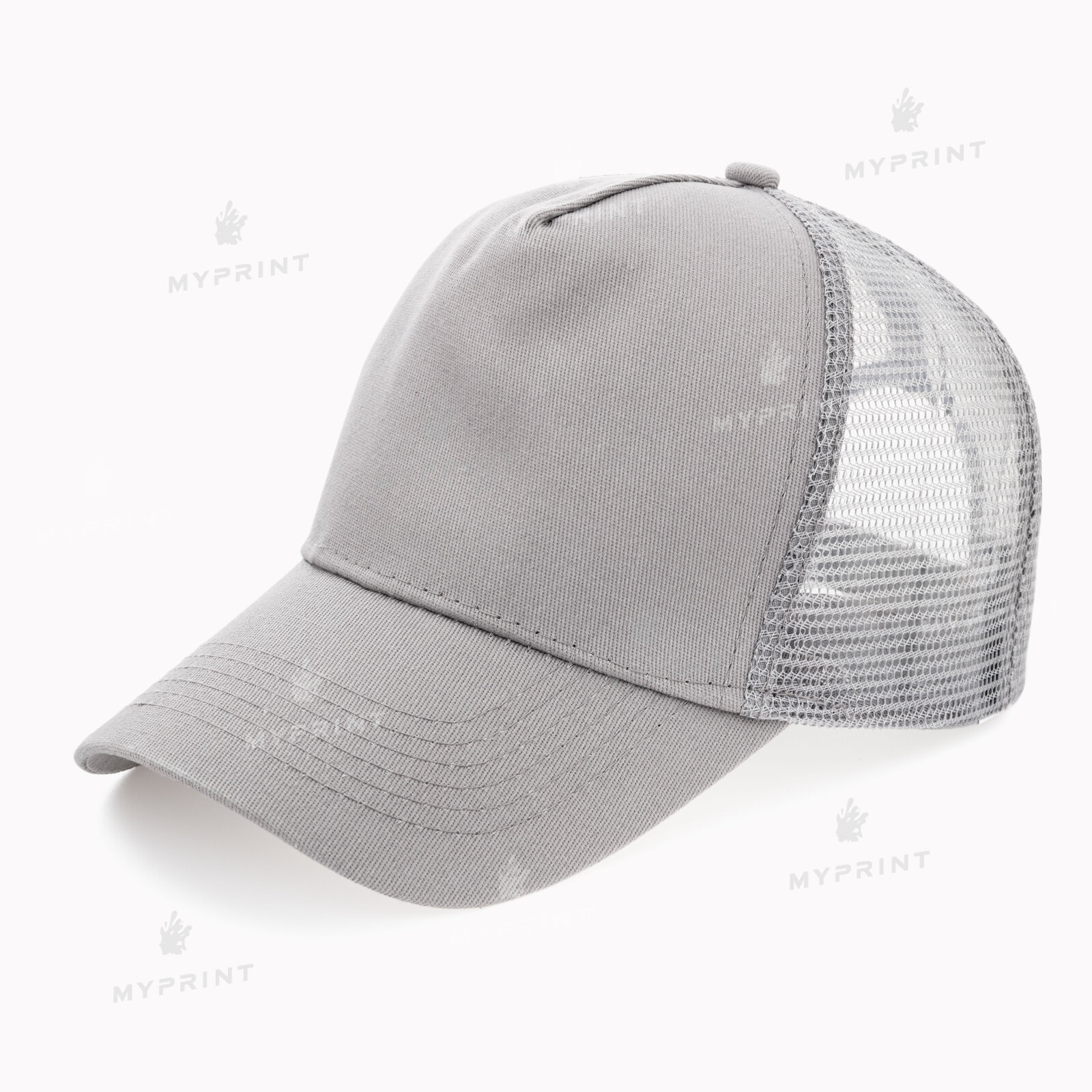 - Кепка п'ятиклинка для термопереносу бавовняна з сіткою сіра.