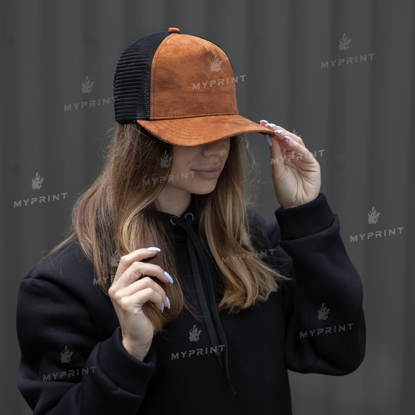 Процес завершено. Кепка п'ятиклинка замшева помаранчева з чорною сіткою тепер не просто заготовка, а готовий виріб з унікальним зображенням або фотографією.