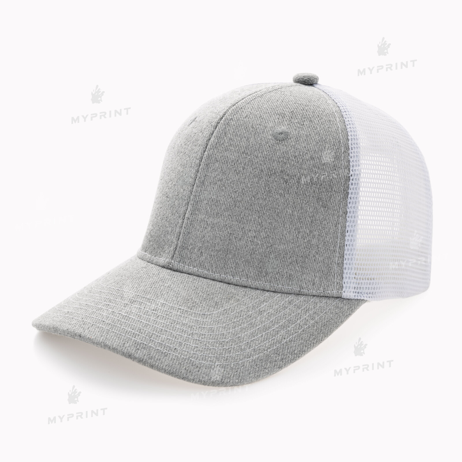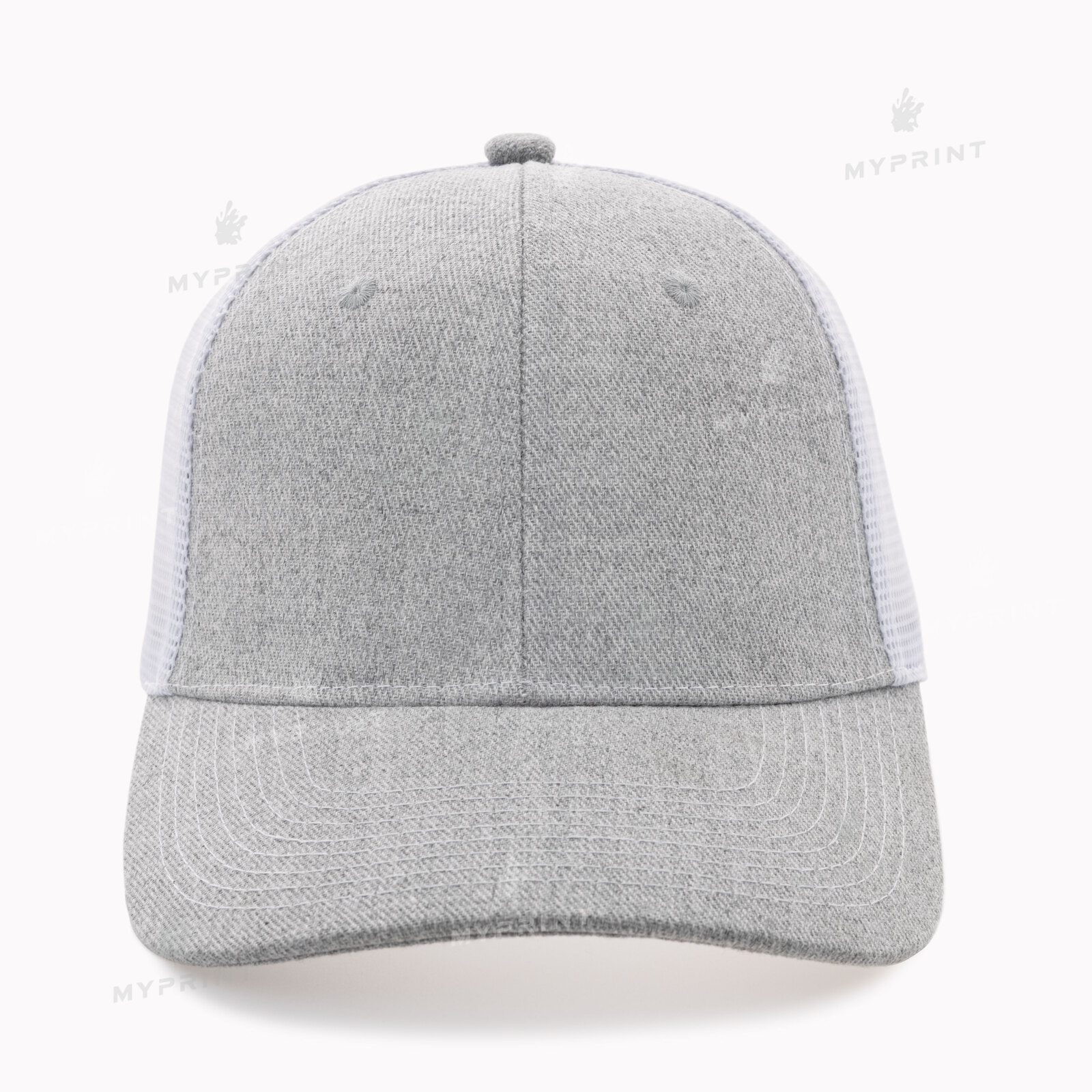 - Кепка шестиклинка для термопереносу бавовняна сіра з білою сіткою.