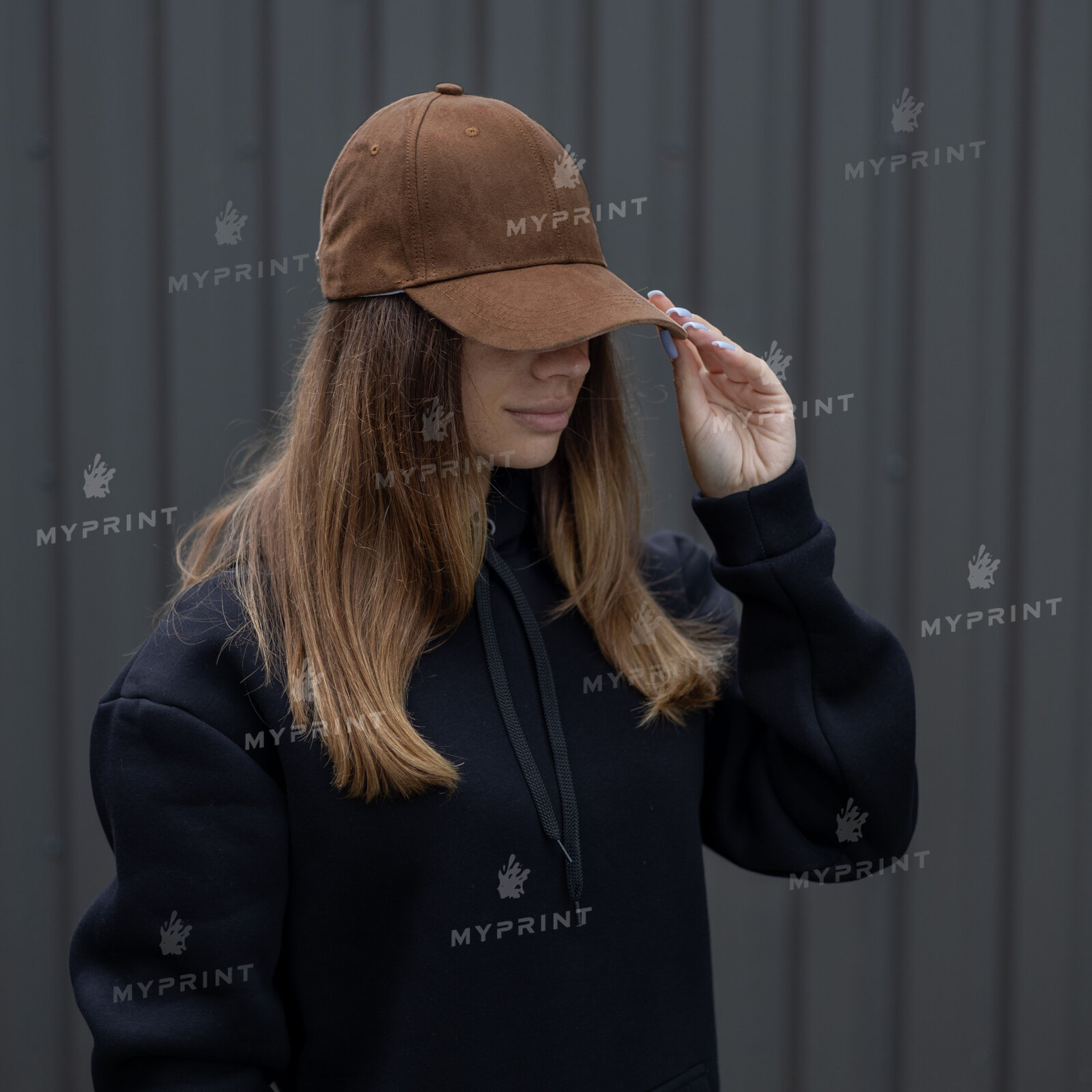 Нанести зображення на Кепка шестиклинка замшева коричнева можна методом DTF друку та термотрансферу.