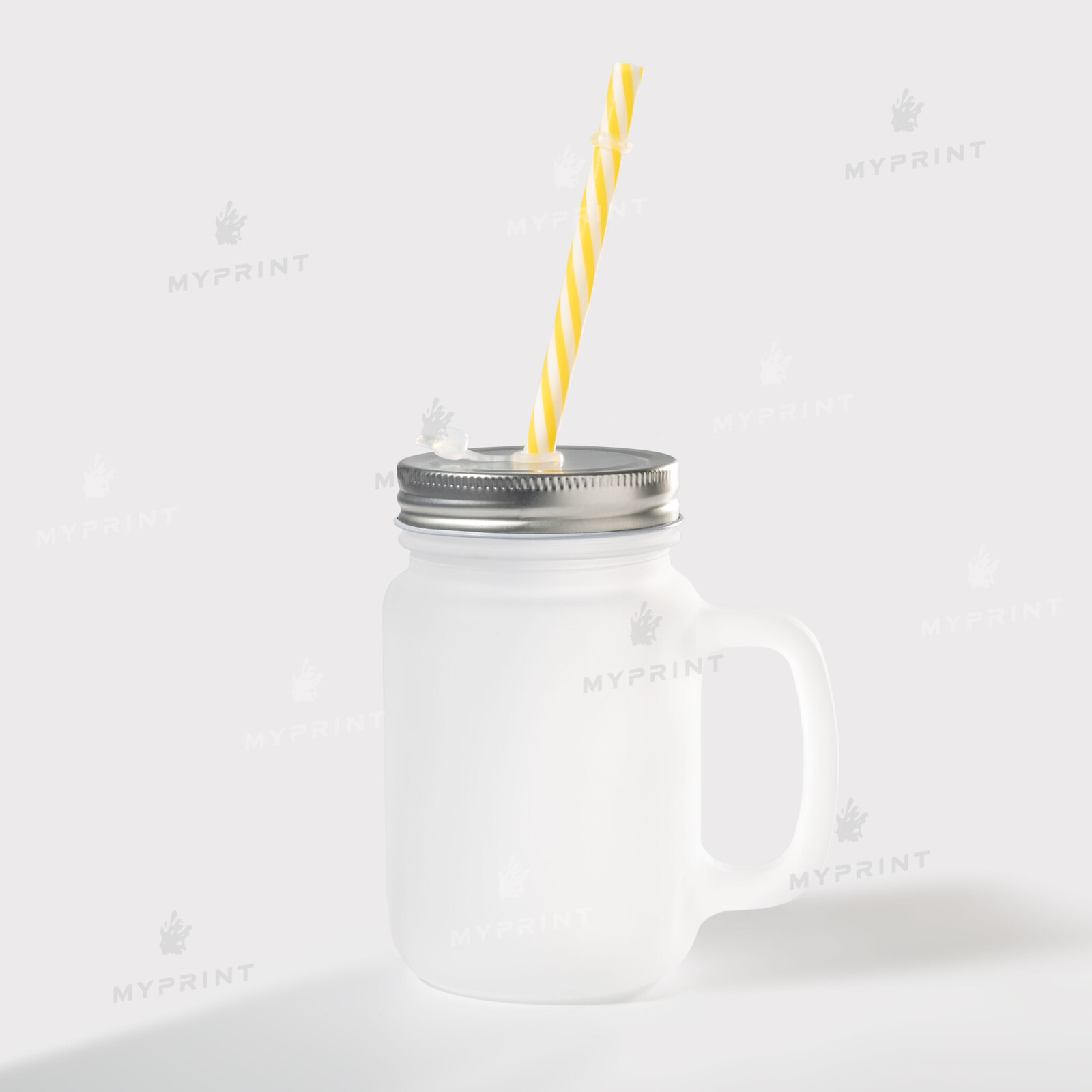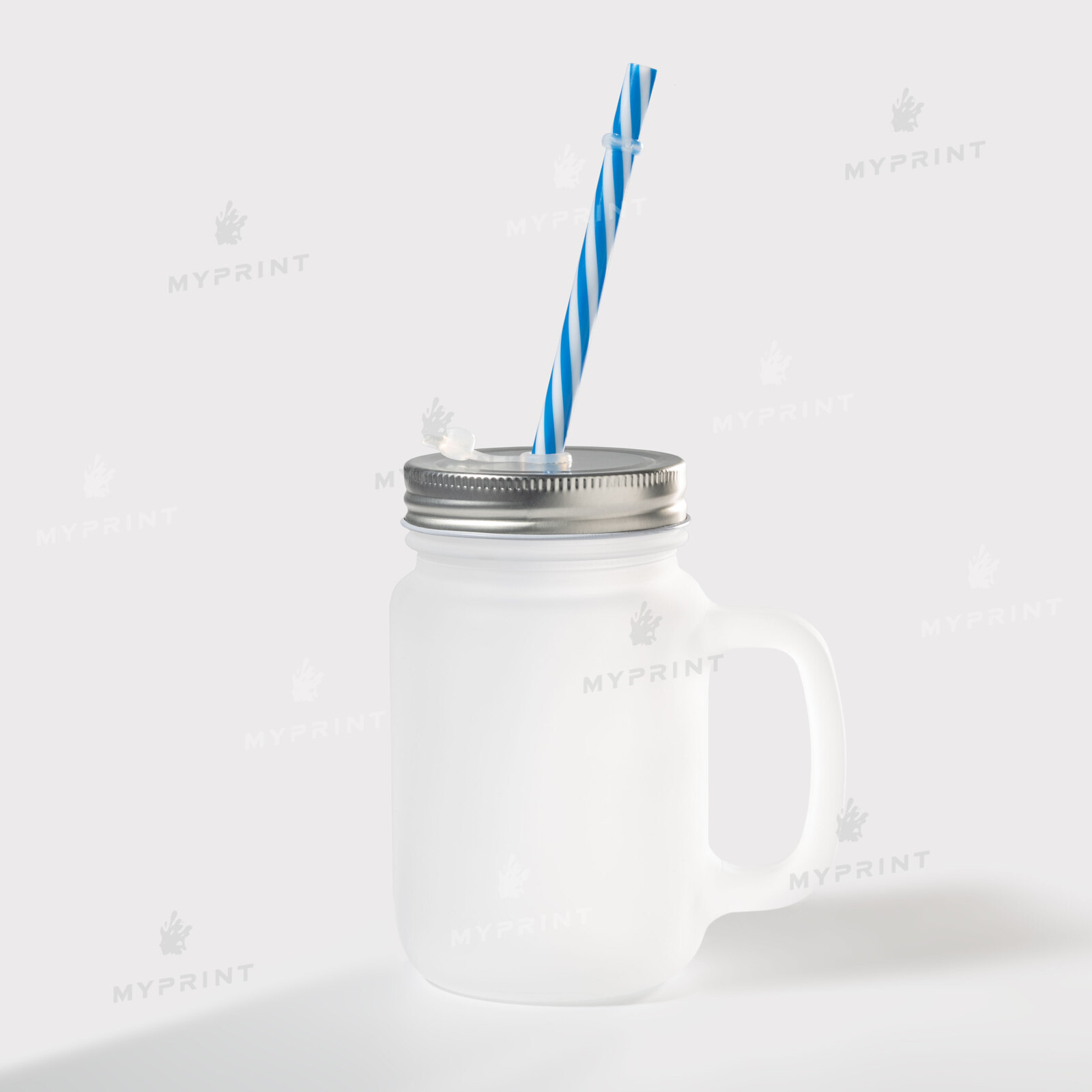 Банка для сублімації з ручкою, трубочкою і кришкою скляна матова (350 мл) (6315)