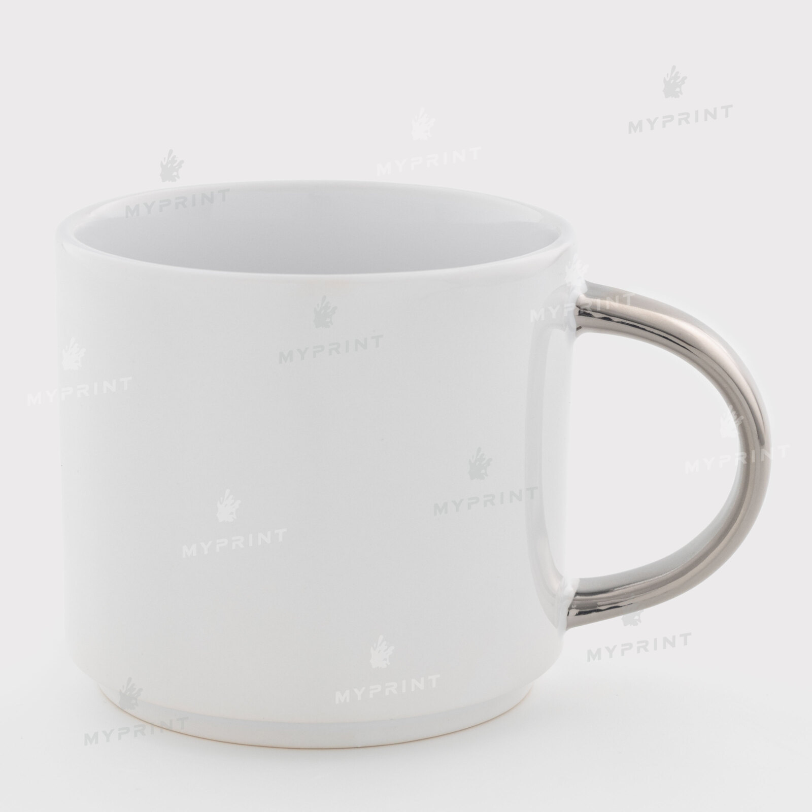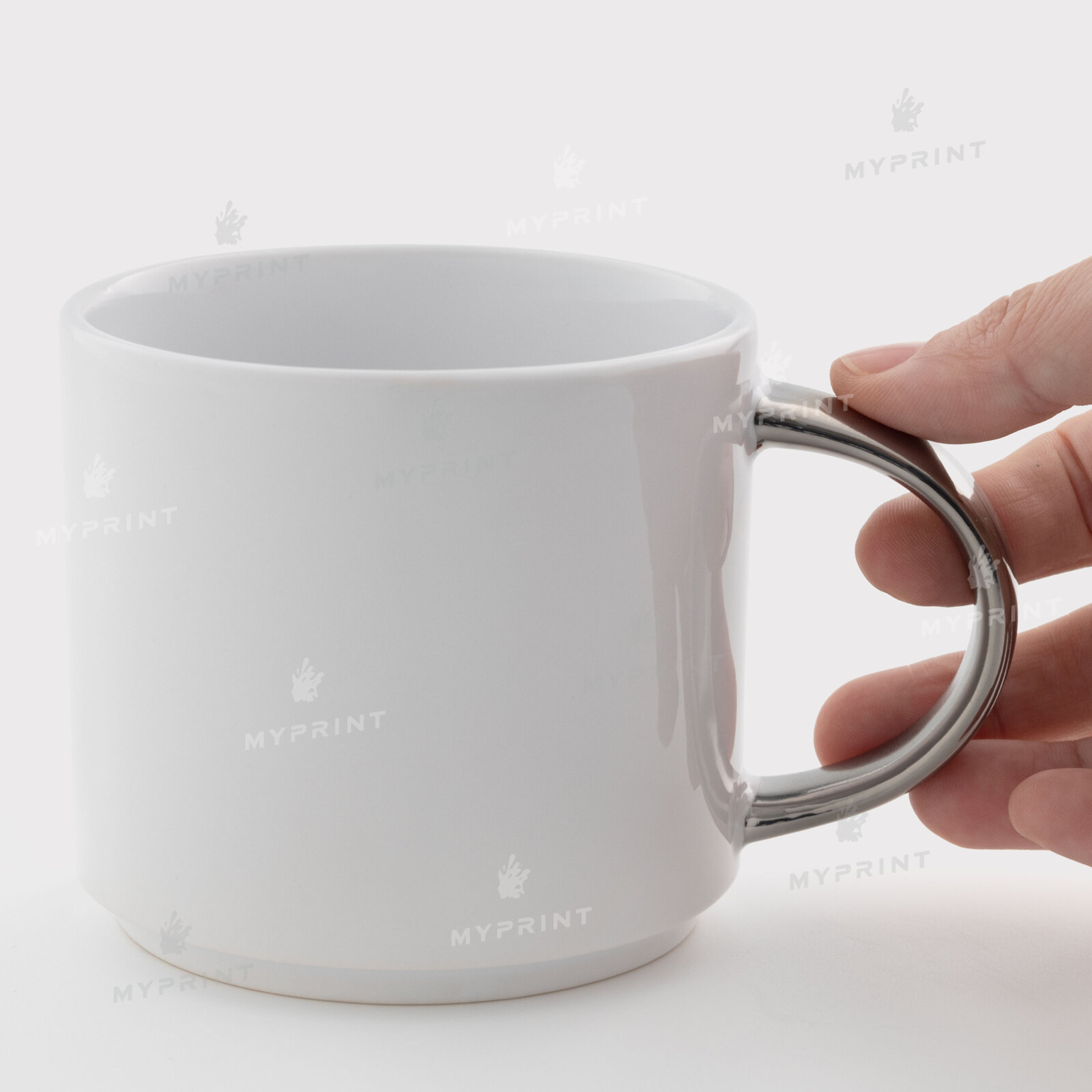 Чашка для сублімації біла з сріблястою ручкою, яка складається одна на іншу (450 мл) (11450)