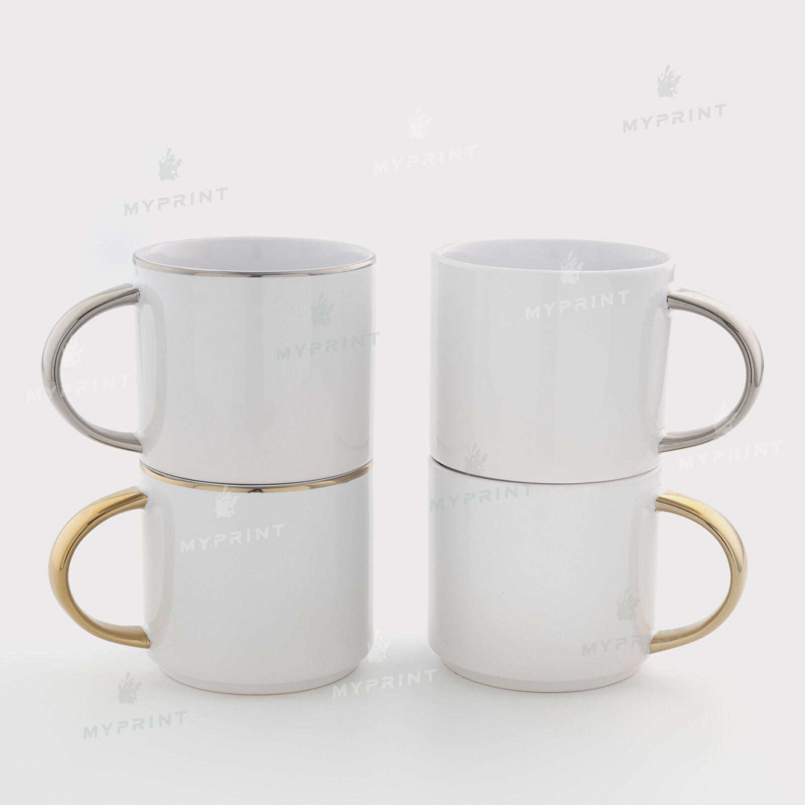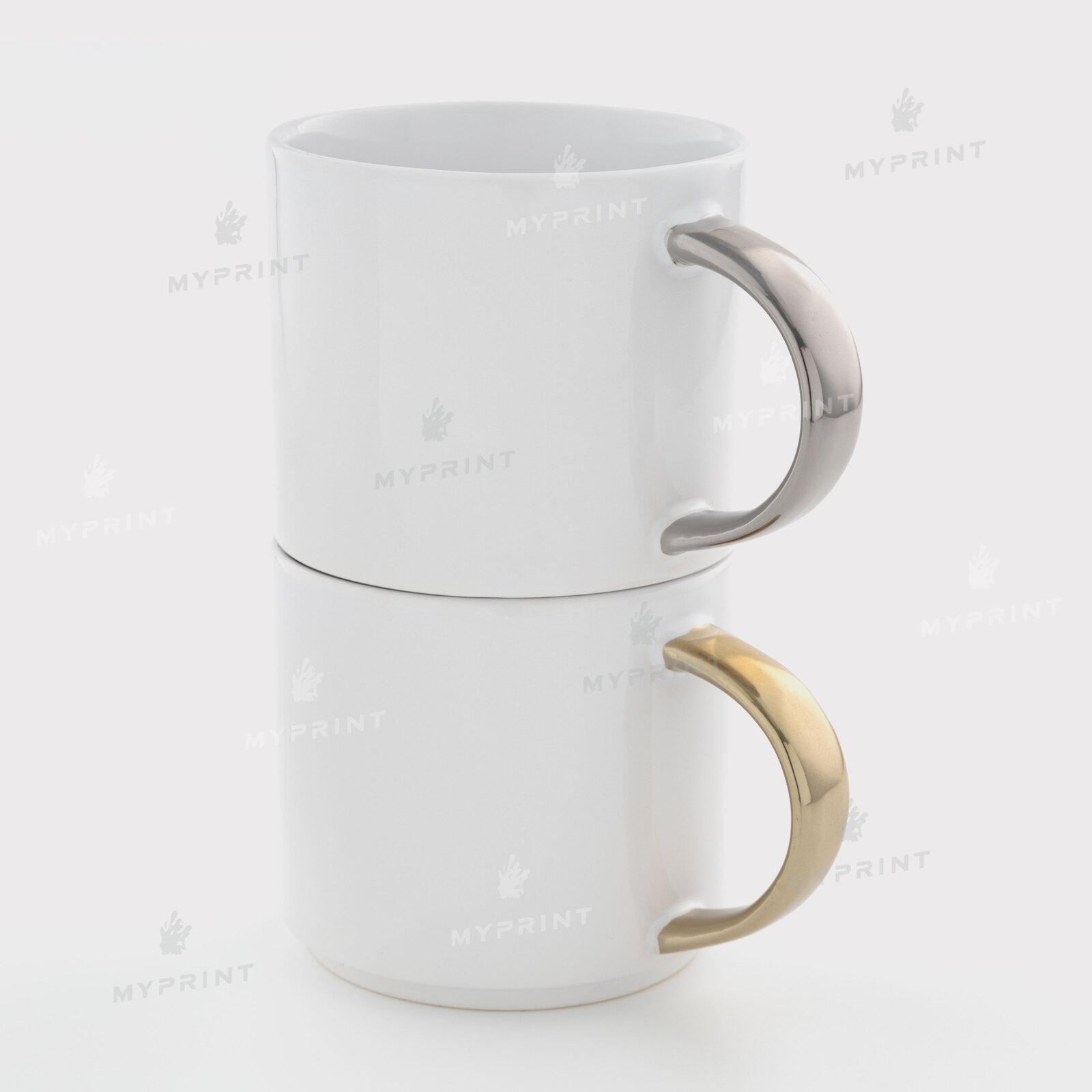 - Чашка для сублімації білий з сріблястою ручкою, яка складається одна на іншу (450 мл)