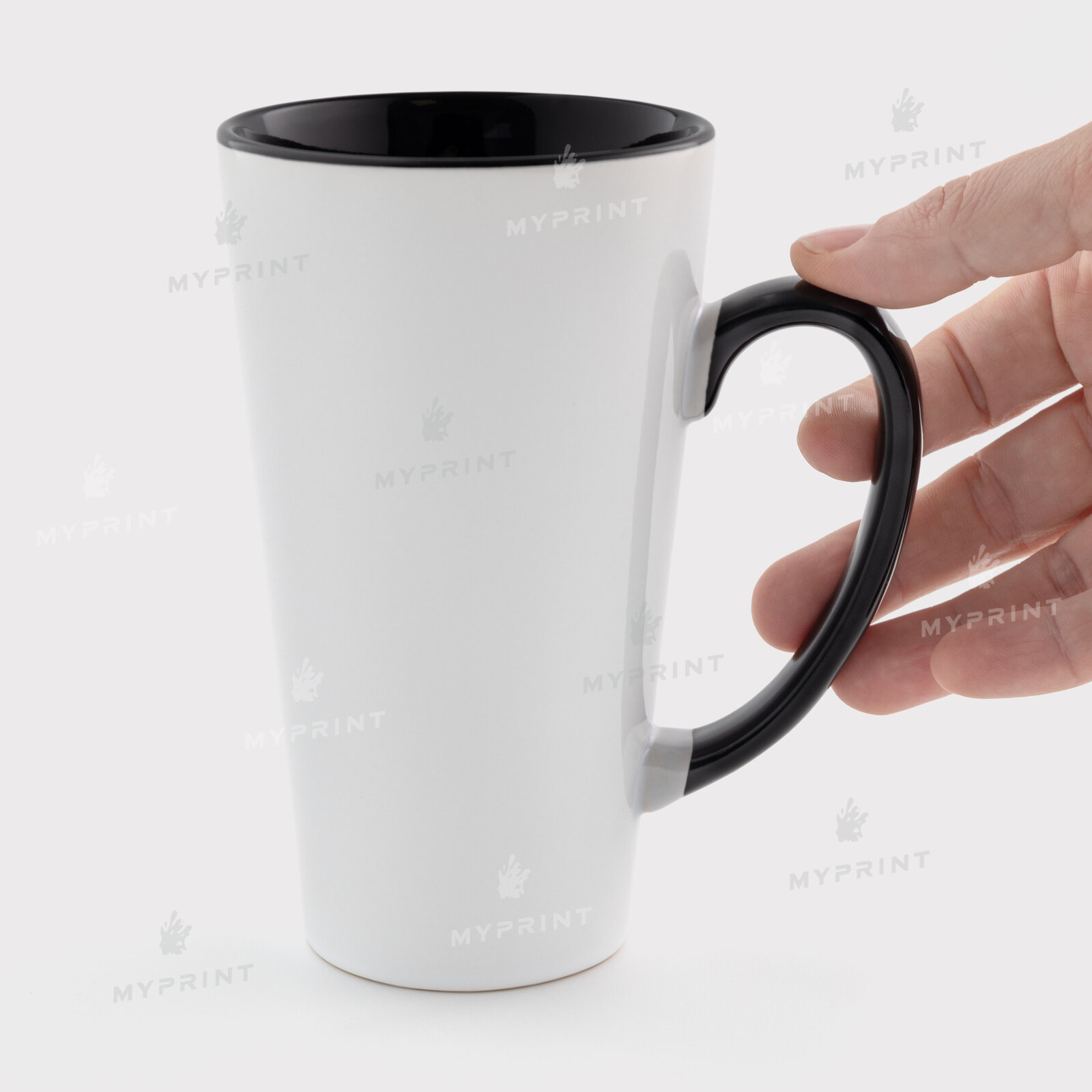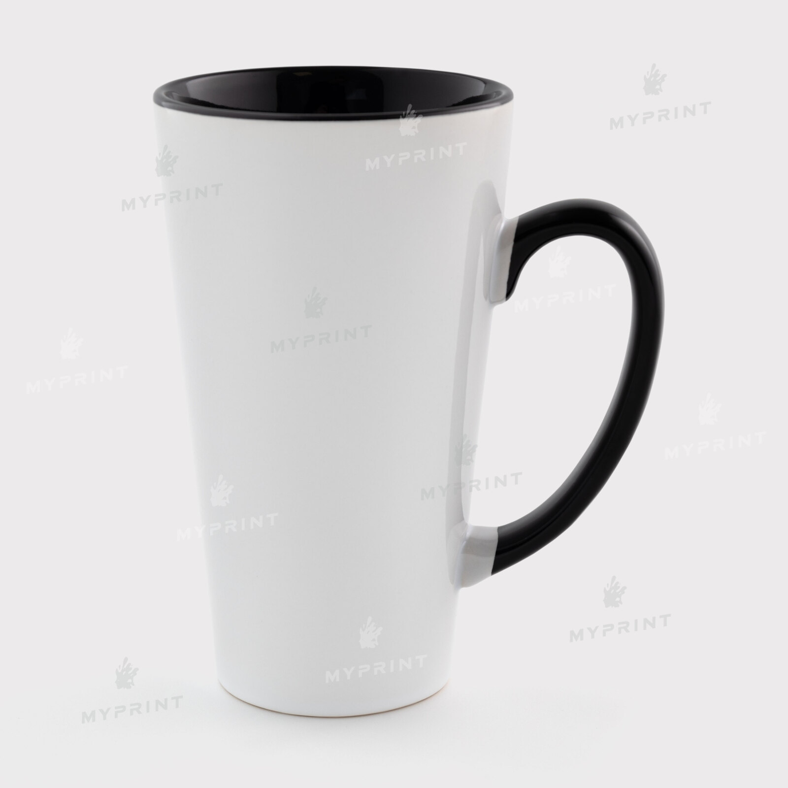- Чашка для сублімації лате кольорова всередині з кольоровою ручкою чорна 17 Oz (500 мл)
