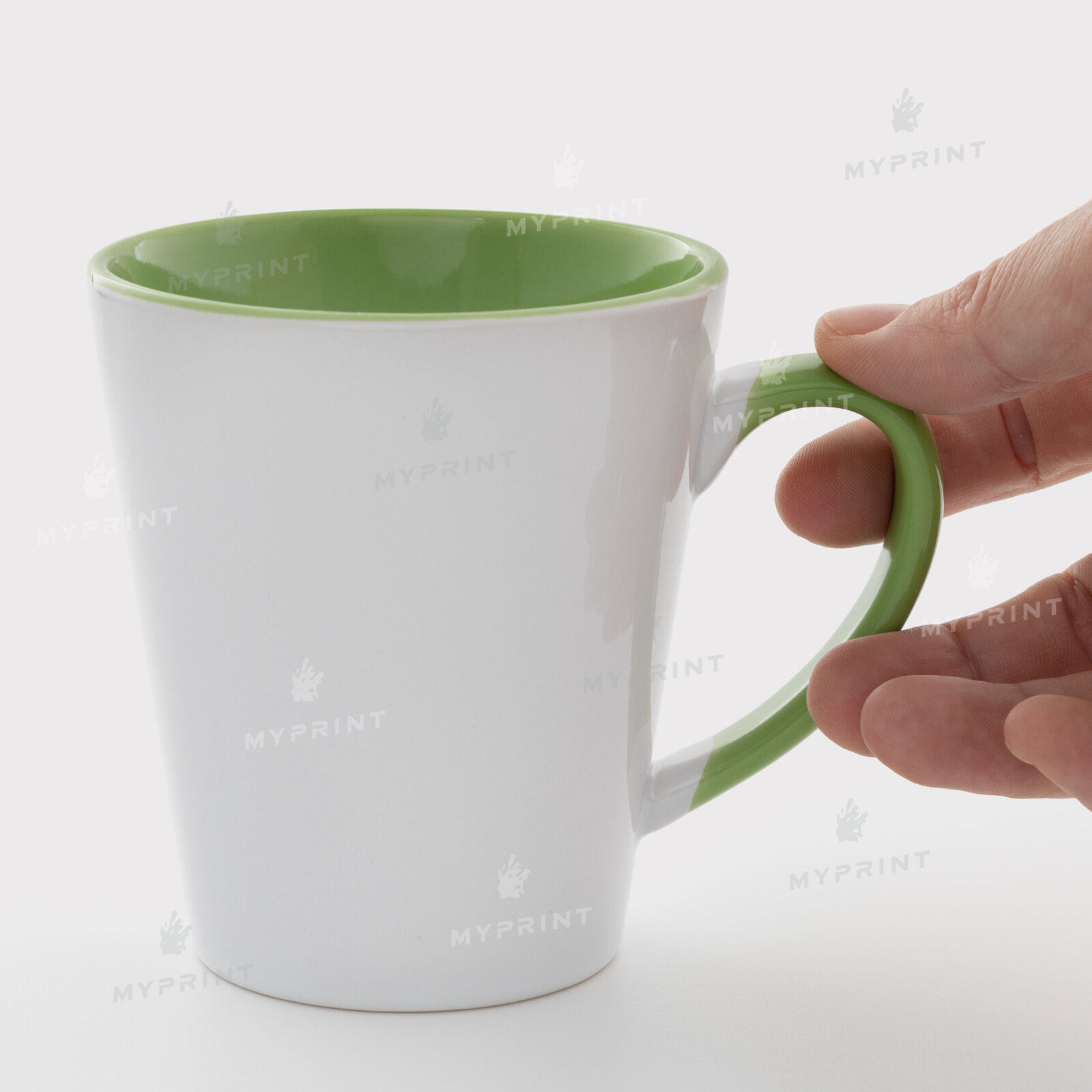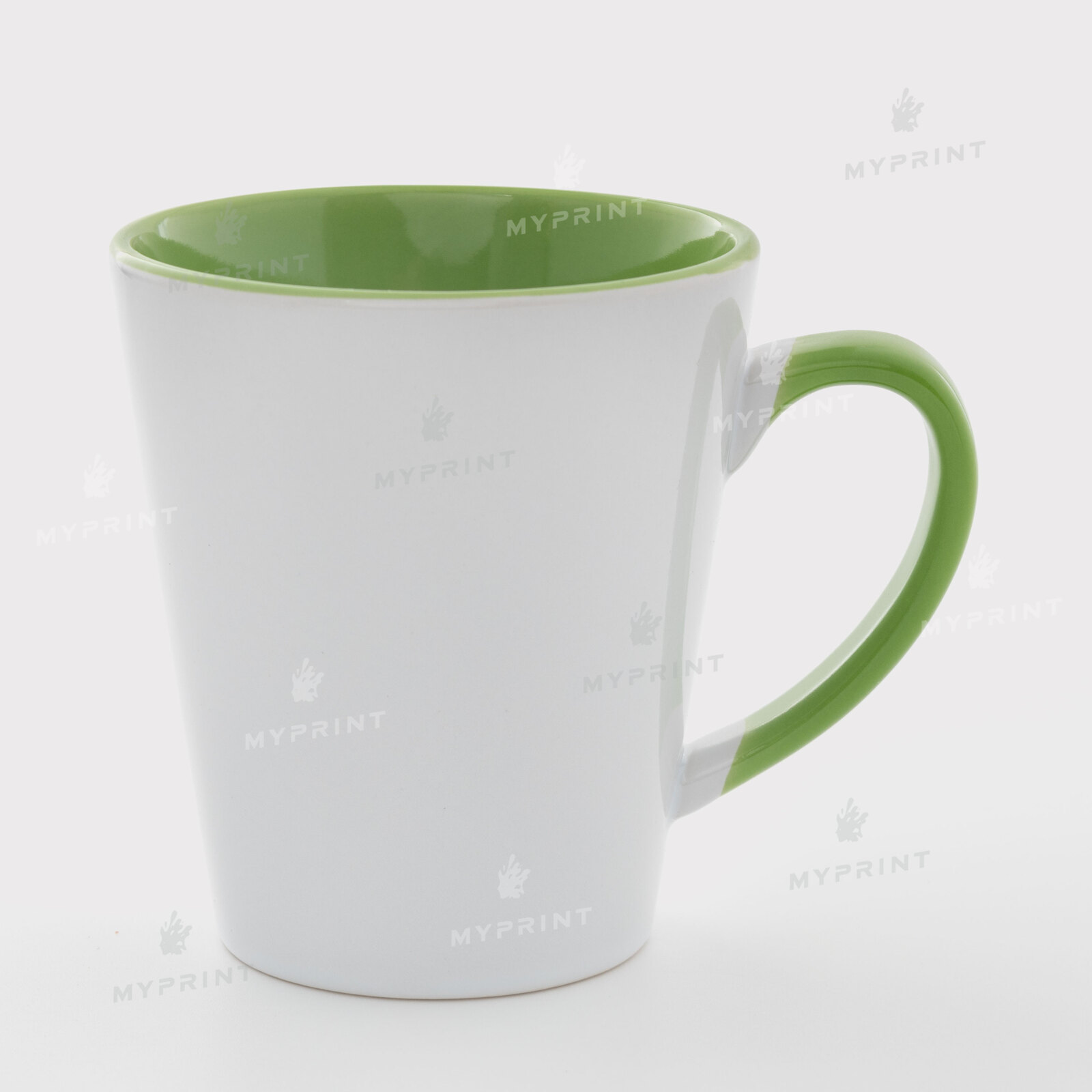 - Чашка для сублімації лате кольорова всередині з кольоровою ручкою салатова 12 Oz (350 мл)