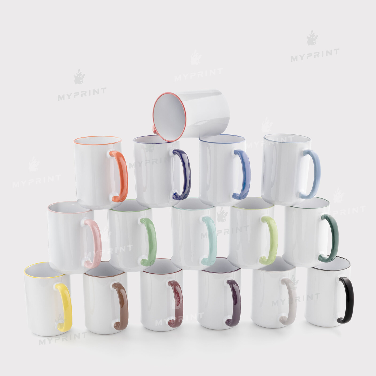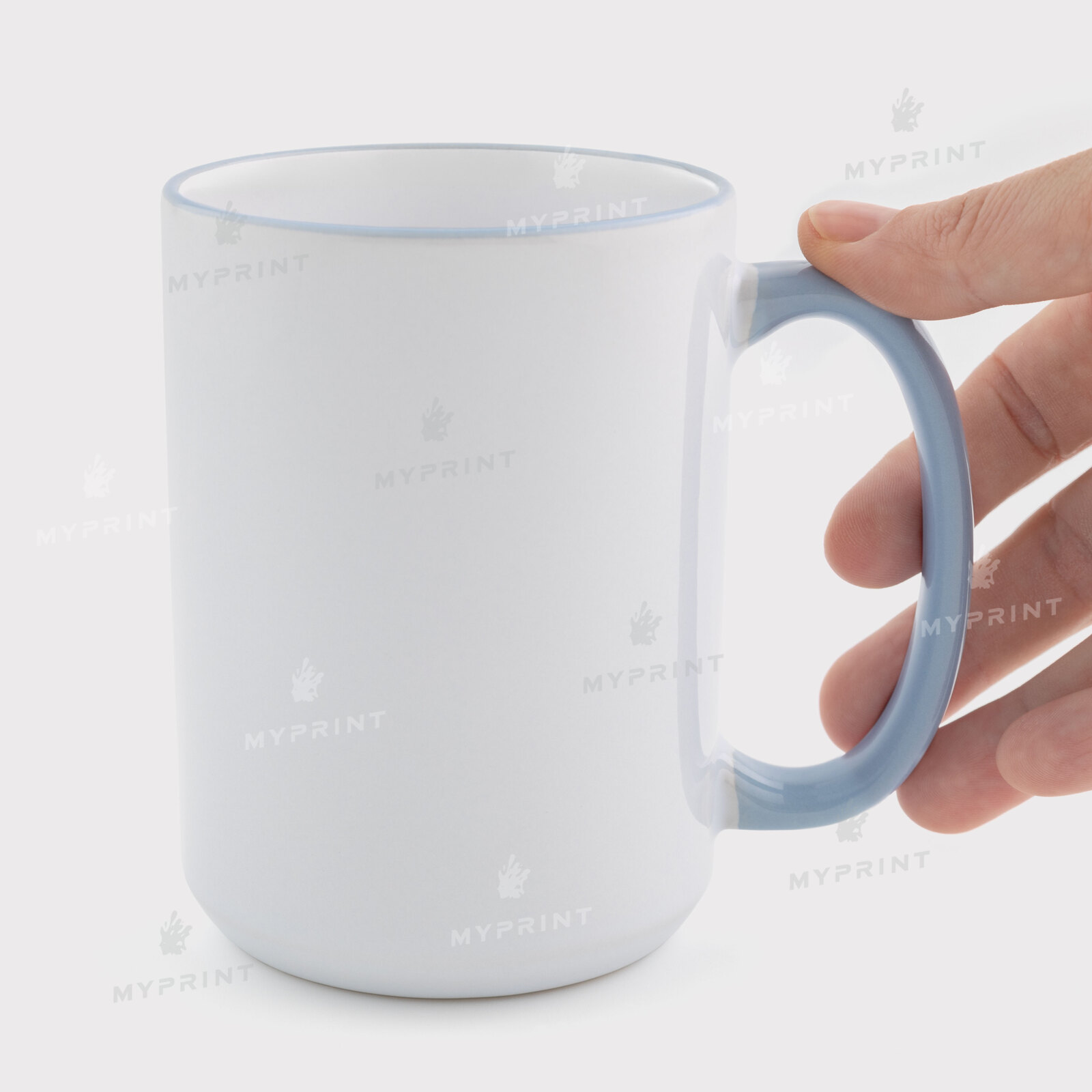- Чашка для сублімації з кольоровим обідком та кольоровою ручкою блакитна 15 Oz (425 мл)