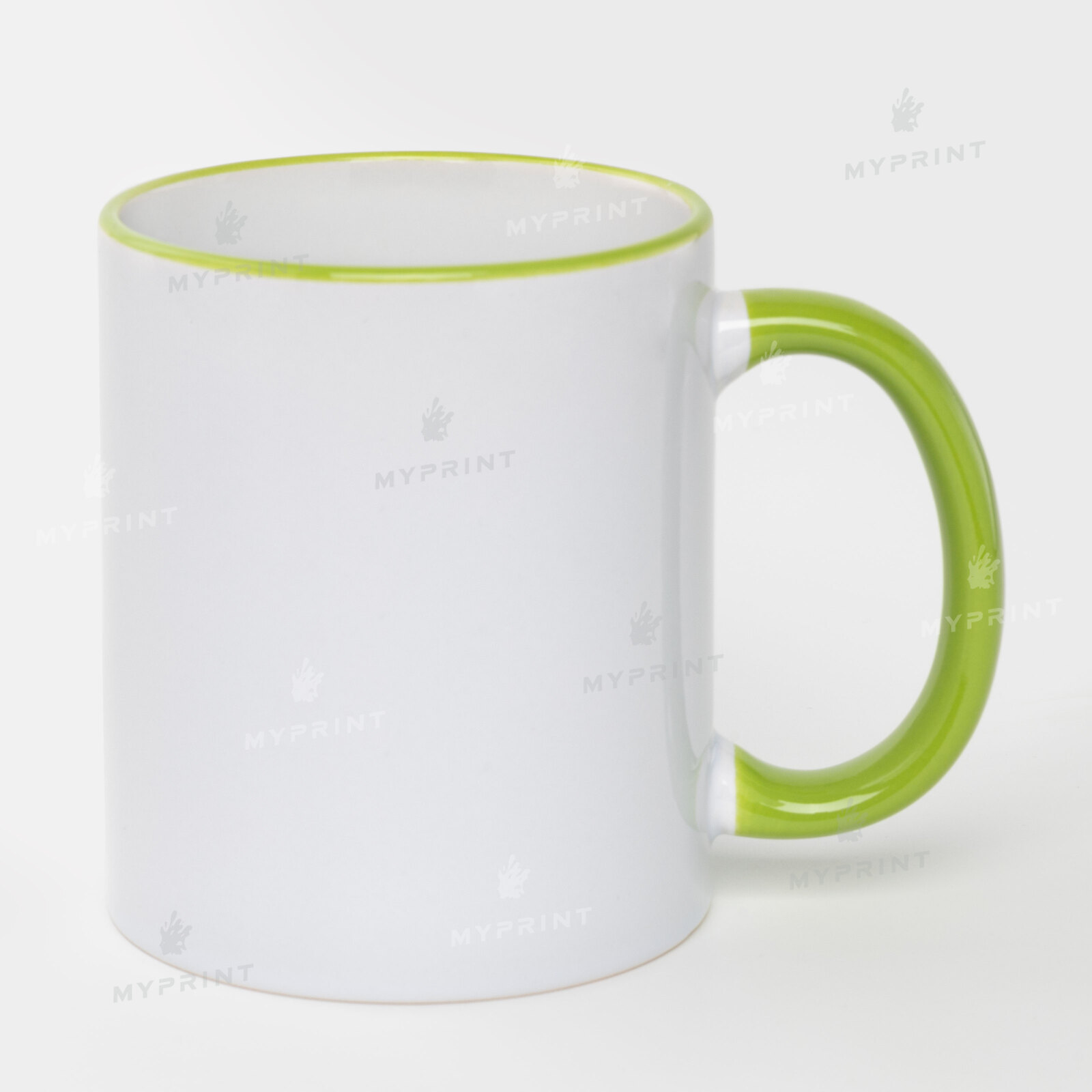 - Чашка для сублімації з кольоровим обідком та кольоровою ручкою салатова 11 Oz (330 мл)
