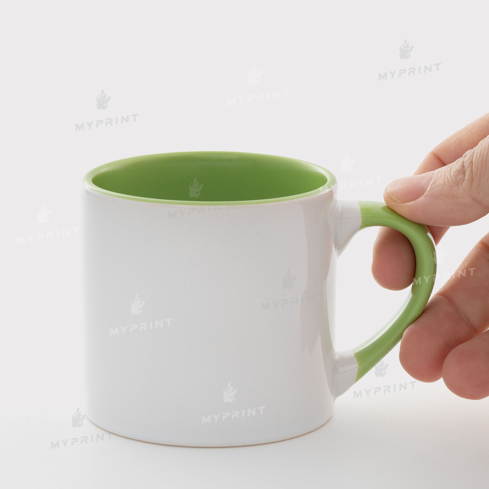 - Чашка для сублімації кольорова всередині з кольоровою ручкою салатова 6 Oz (180 мл)