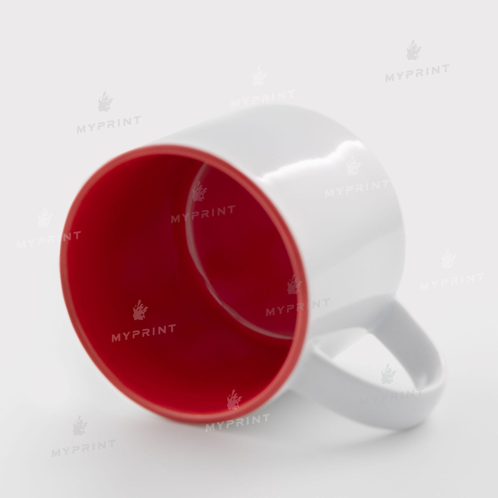 Процес завершено. Чашка для сублімації кольорова всередині, яка складається одна на іншу червона (500 мл) тепер це не просто заготовка, а готовий виріб з унікальним зображенням або фотографією.