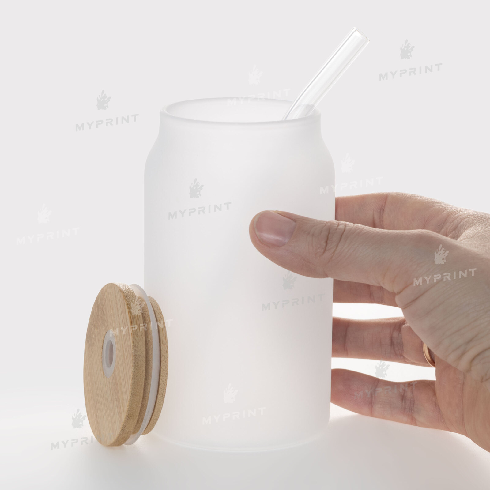Процес завершено. Банка для сублімації зі скляною трубочкою і дерев'яною кришкою скляна матова (400 мл) тепер це не просто заготовка, а готовий виріб з унікальним зображенням або фотографією.