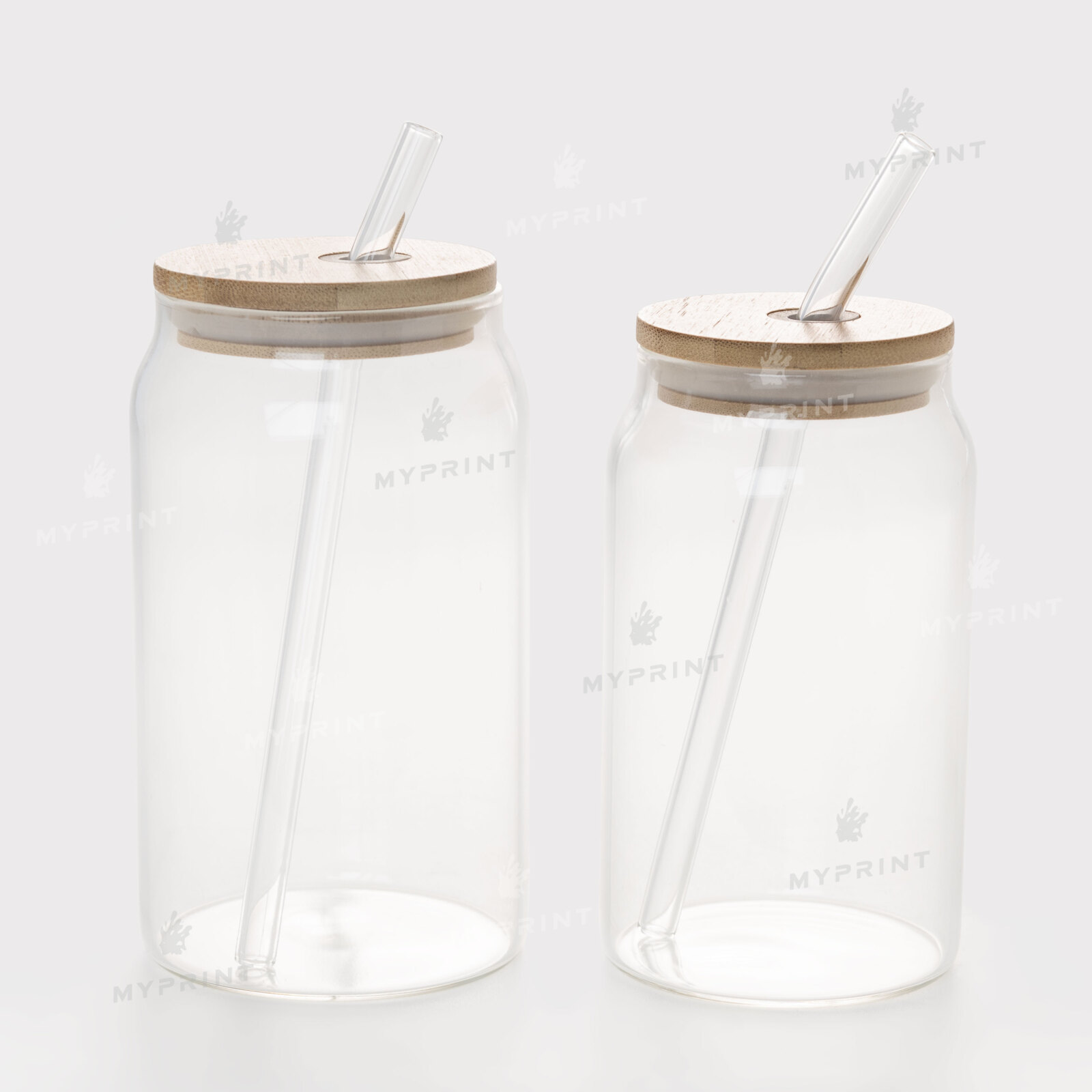 - Банка для сублімації зі скляною трубочкою і дерев'яною кришкою скляна прозора (550 мл)